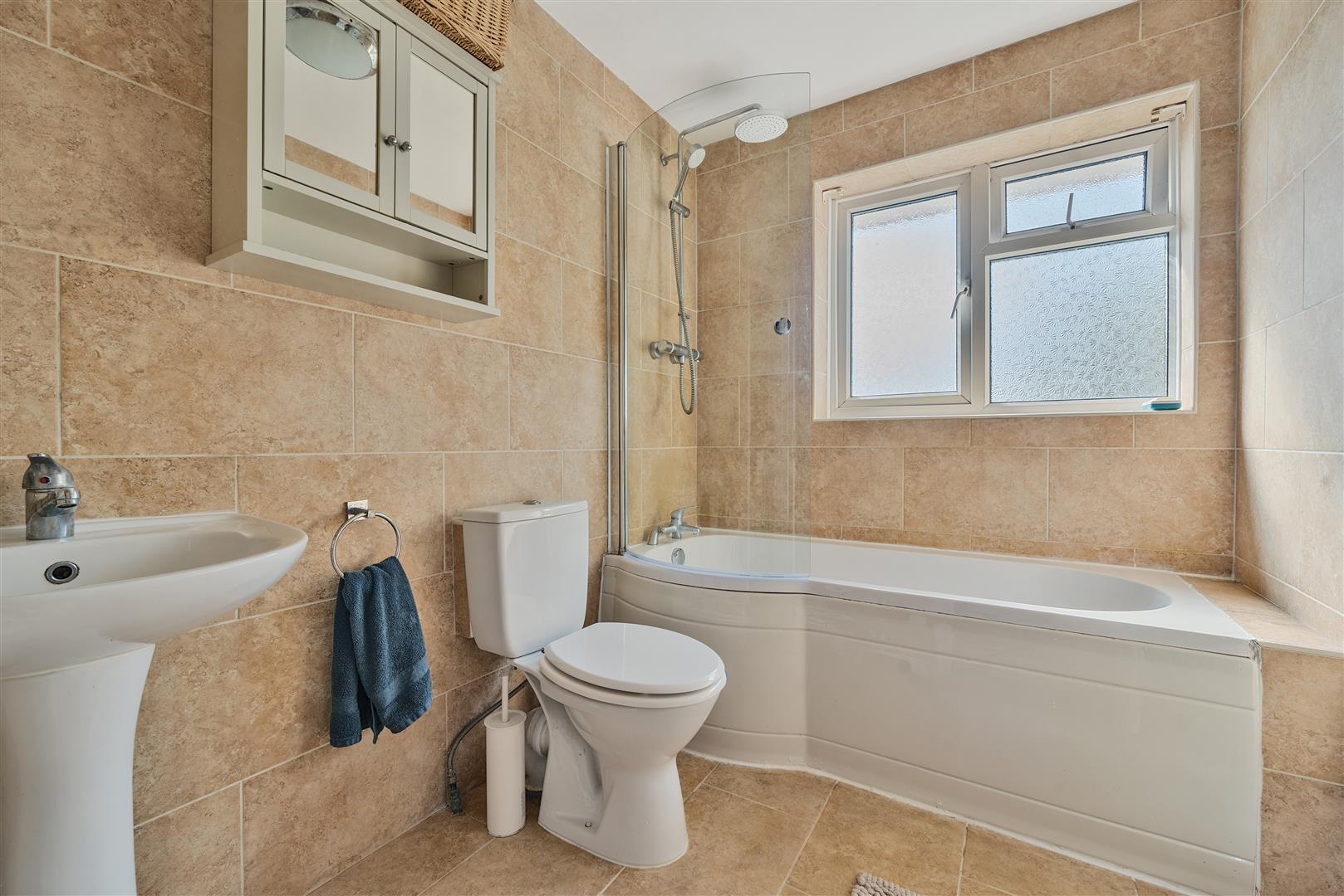 A well-appointed family bathroom, pristinely decorated, with pea-shaped bath and drencher head shower, completes the upstairs accommodation.