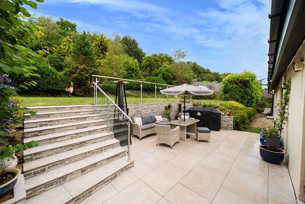 - Half-acre landscaped plot with sun-trap terraces, sweeping lawns and integral double garage plus ample parking