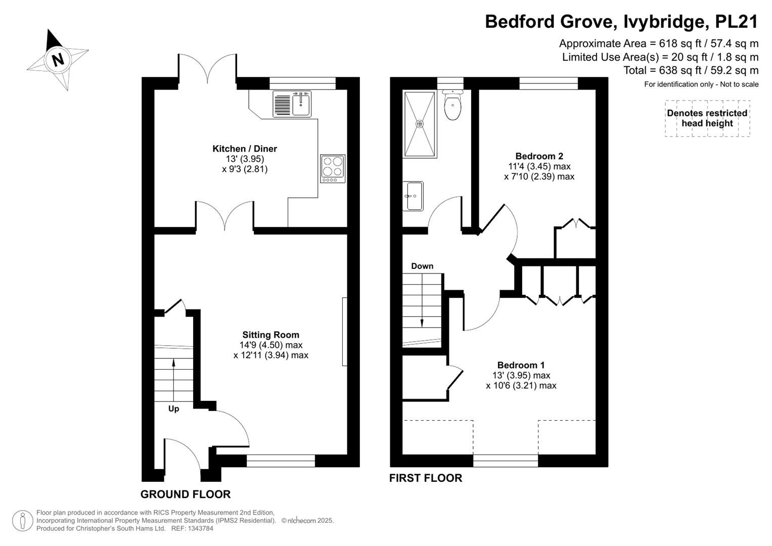 Stairs from the front door invite you to the first floor where there are two double bedrooms both with built-in wardrobes and a ceiling hatch from the landing, opens to a partially boarded loft providing additional storage. The modern family shower room boasts a double walk-in shower and completes the upstairs accommodation.