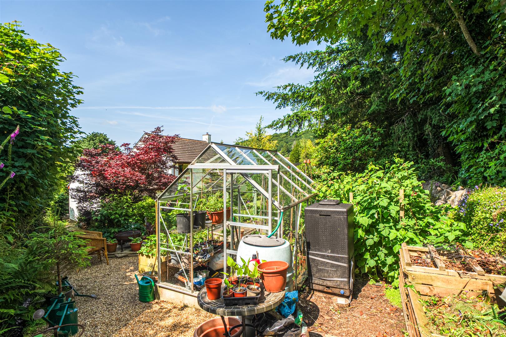 A side gate invites you to the highly private, rear garden which is an absolute paradise and feast for the senses. Beautifully landscaped and designed with a manicured lawn and an abundance of mature shrubbery that showcases colour and fragrance all year round. There is also a productive vegetable plot, fruit garden and greenhouse making this a dream for the green-fingered enthusiast! A small section of moorland stream trickles through the garden on the eastern boundary and a well-positioned patio provides the perfect place to take in your surroundings.