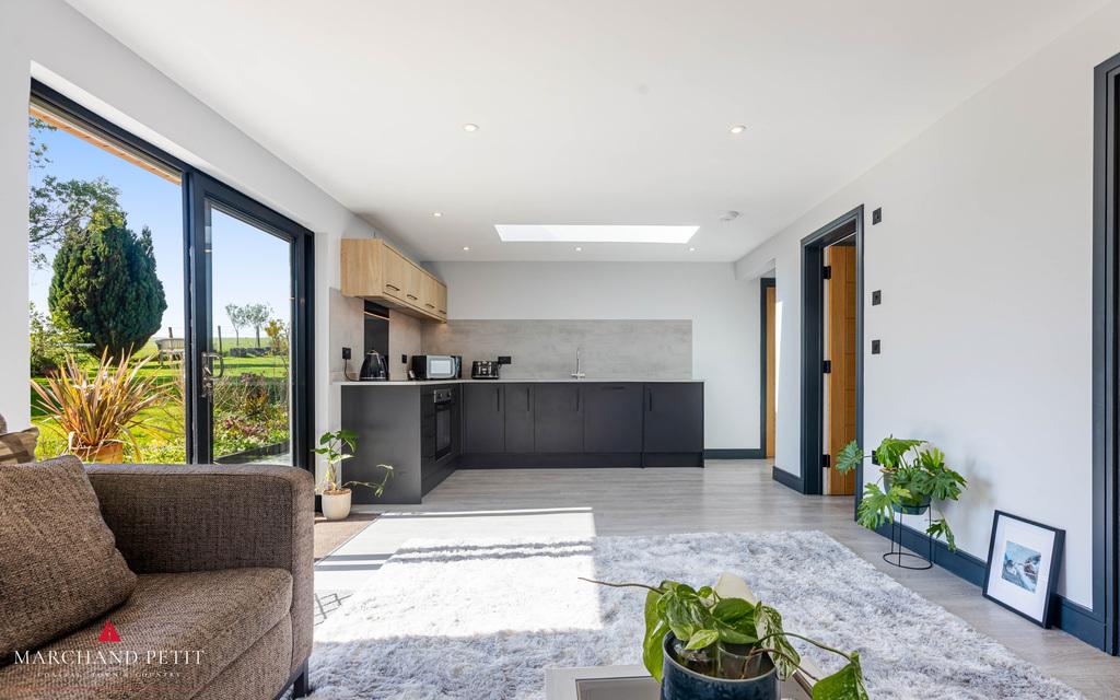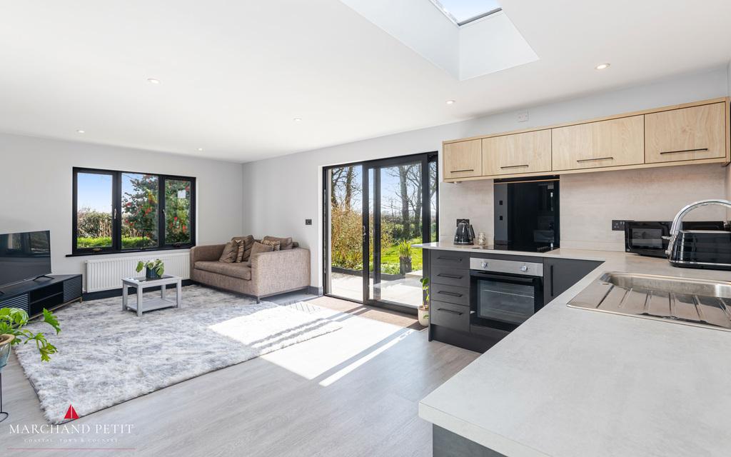- Open-plan kitchen and living area with extensive glazing