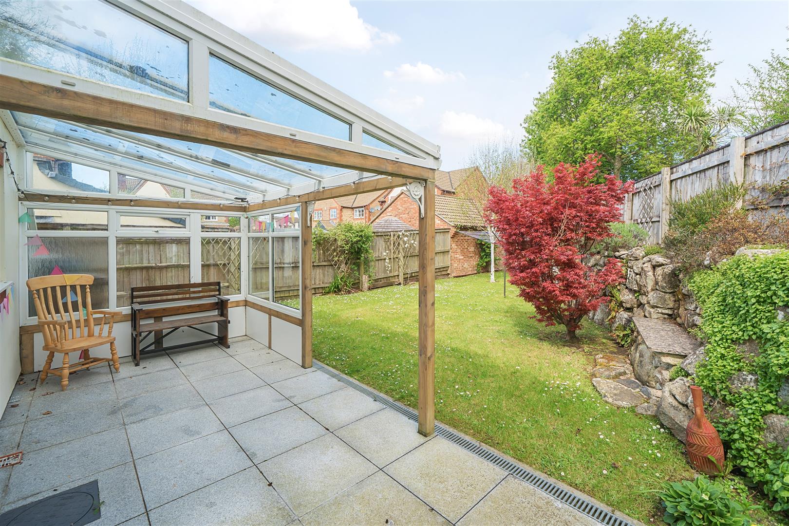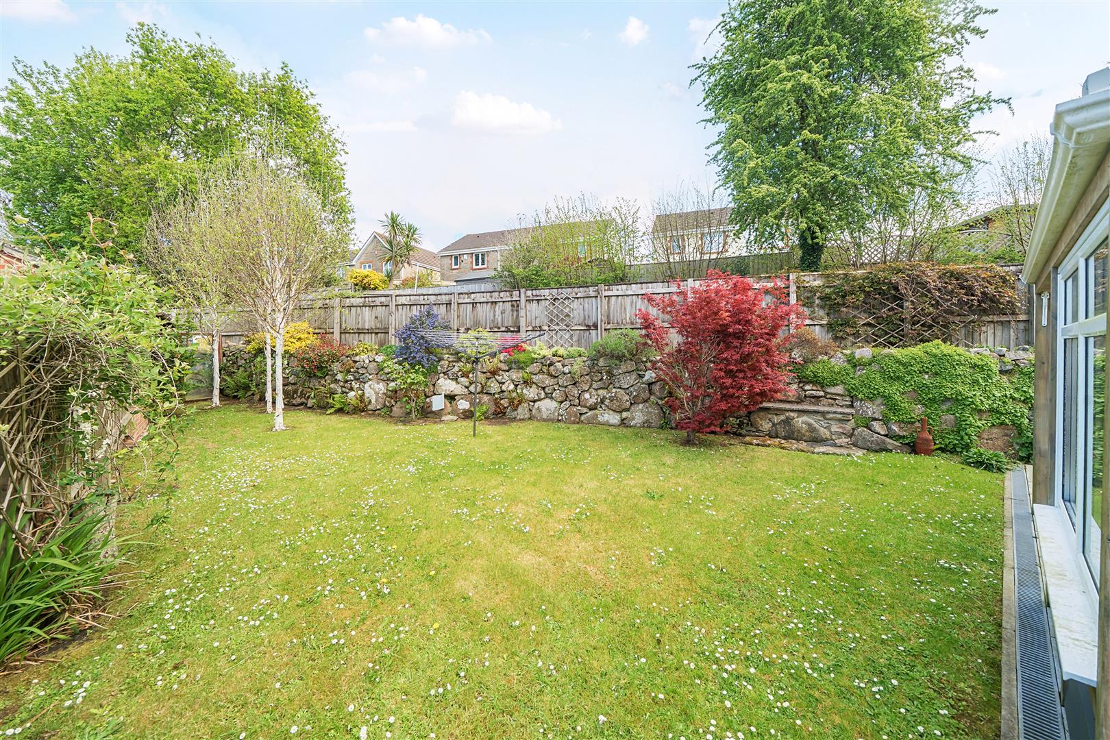 There is a side pedestrian gate inviting you to the rear garden which has been beautifully landscaped and is bordered by a traditional Devon Bank. A large patio adjoins a permanently covered terrace, perfect for entertaining and providing an oasis in all weathers. To the far side of the patio is a separate outbuilding/store.