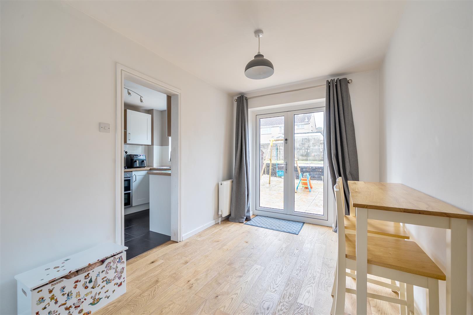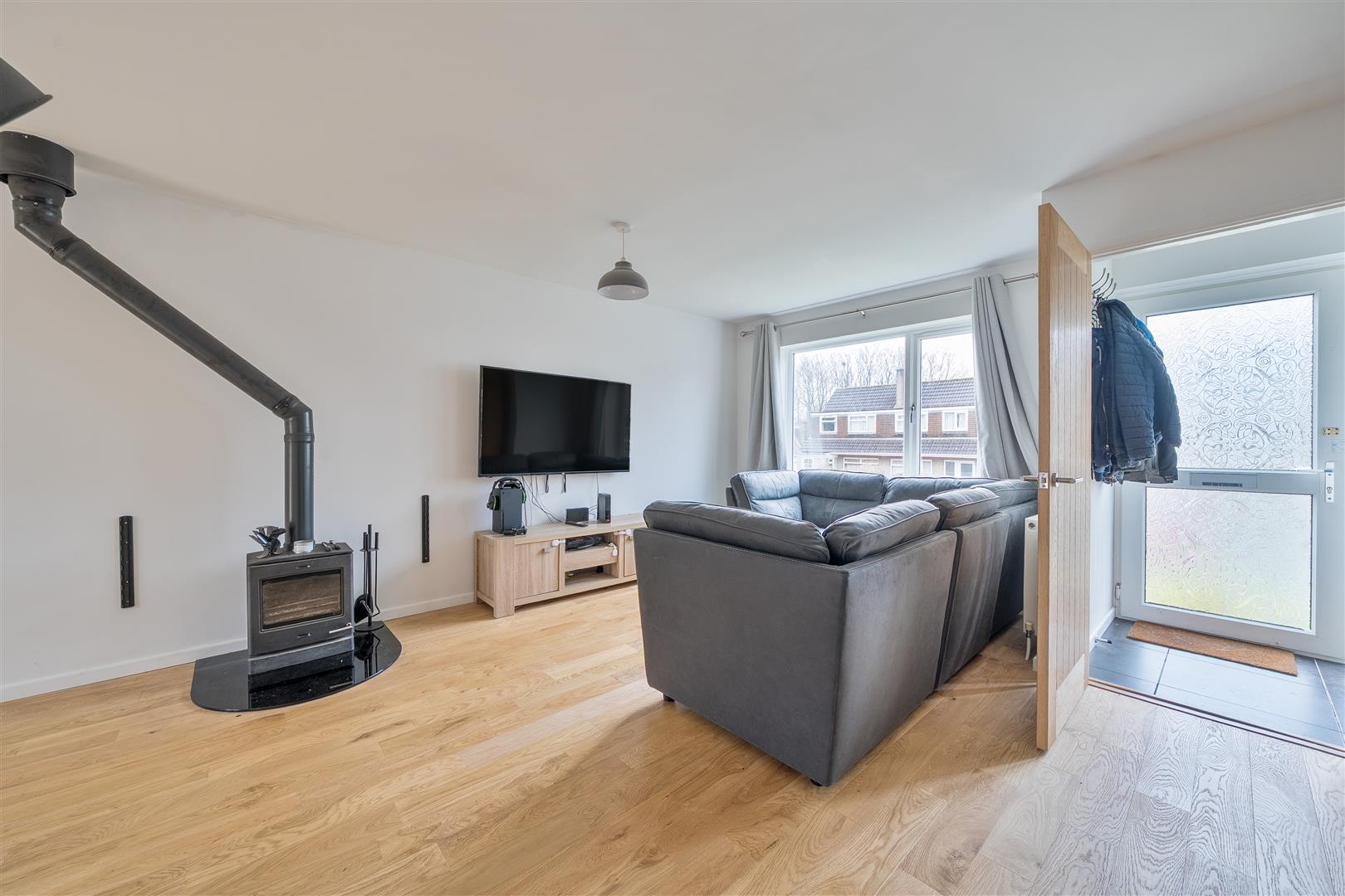 Welcoming you from the entrance vestibule is the impressively large reception room doused in natural light from its dual aspect, south-facing picture window to the front and double doors to the rear. The current owners have cleverly used furniture and a stunning wood burner to define the sitting and dining areas where there is also ample space for a family table outside the newly fitted kitchen. Double doors from the dining area invite you to the garden, extending this sociable space. The kitchen, overlooking the rear garden, offers a range of integrated appliances, plentiful storage and also offers external access.