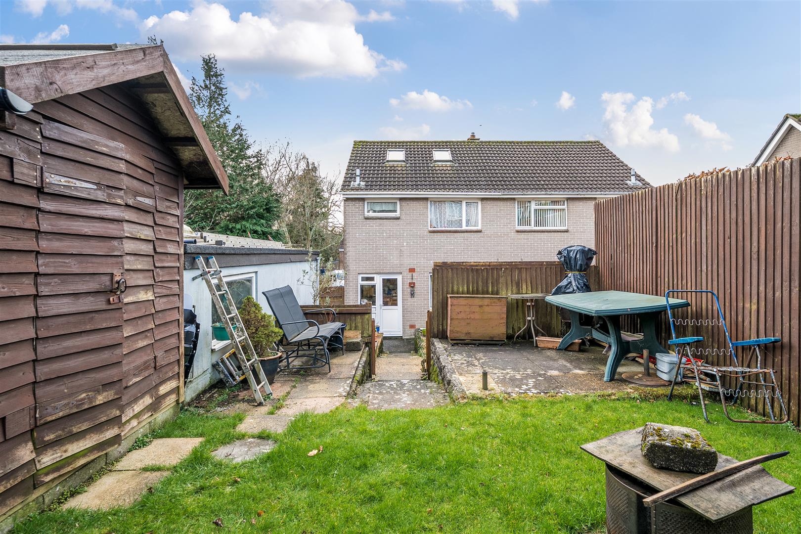 Double wooden gates invite you to additional parking, the detached garage and the rear garden which has both gravelled and raised spaces for pot plants and an elevated level lawn. Hidden behind the separate workshop is a covered seating area - a super, secret spot to while away the hours with a nice glass of something at the end of the day, whatever the weather.