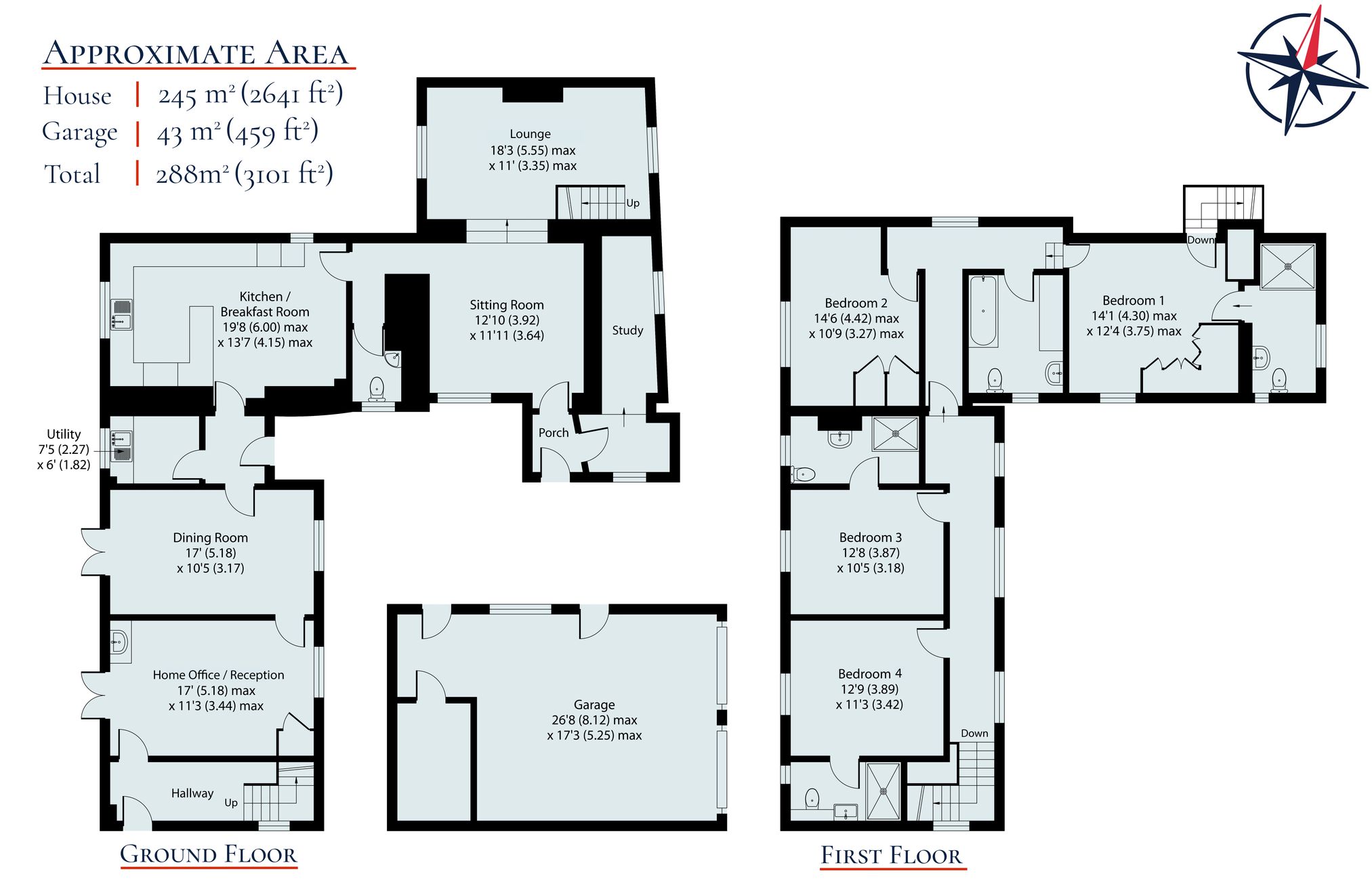 - 4 Bedrooms with ample entertaining rooms or studies