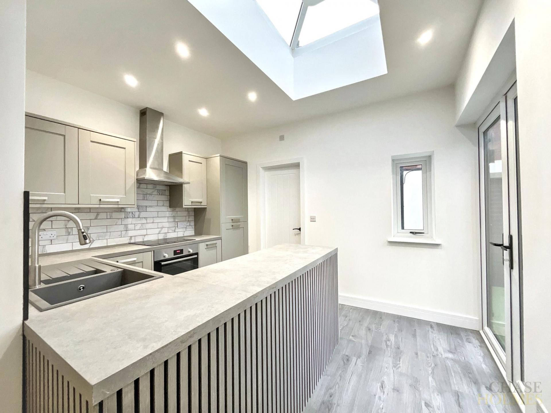 This stunning, fully renovated terraced house offers modern living with a highly versatile layout, all in a ready-to-move-into condition. The bright and spacious open-plan kitchen provides the perfect space for everyday living and entertaining.