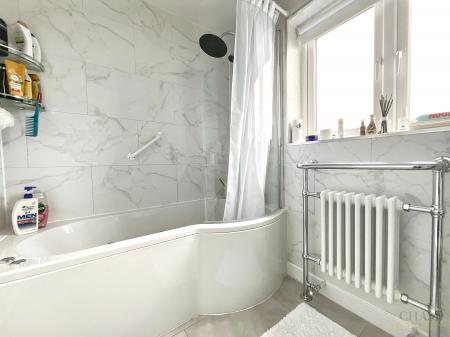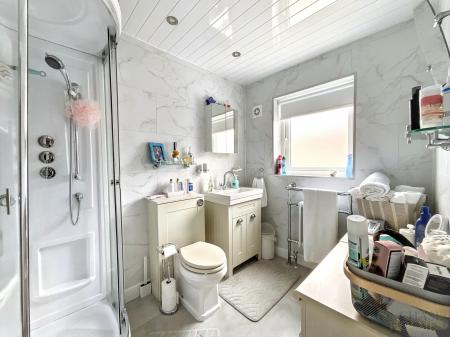Upstairs, there are four well-proportioned bedrooms and two modern bathrooms, including a main bathroom with a luxurious jacuzzi bath with over head shower and hand shower, ideal for unwinding after a long day.