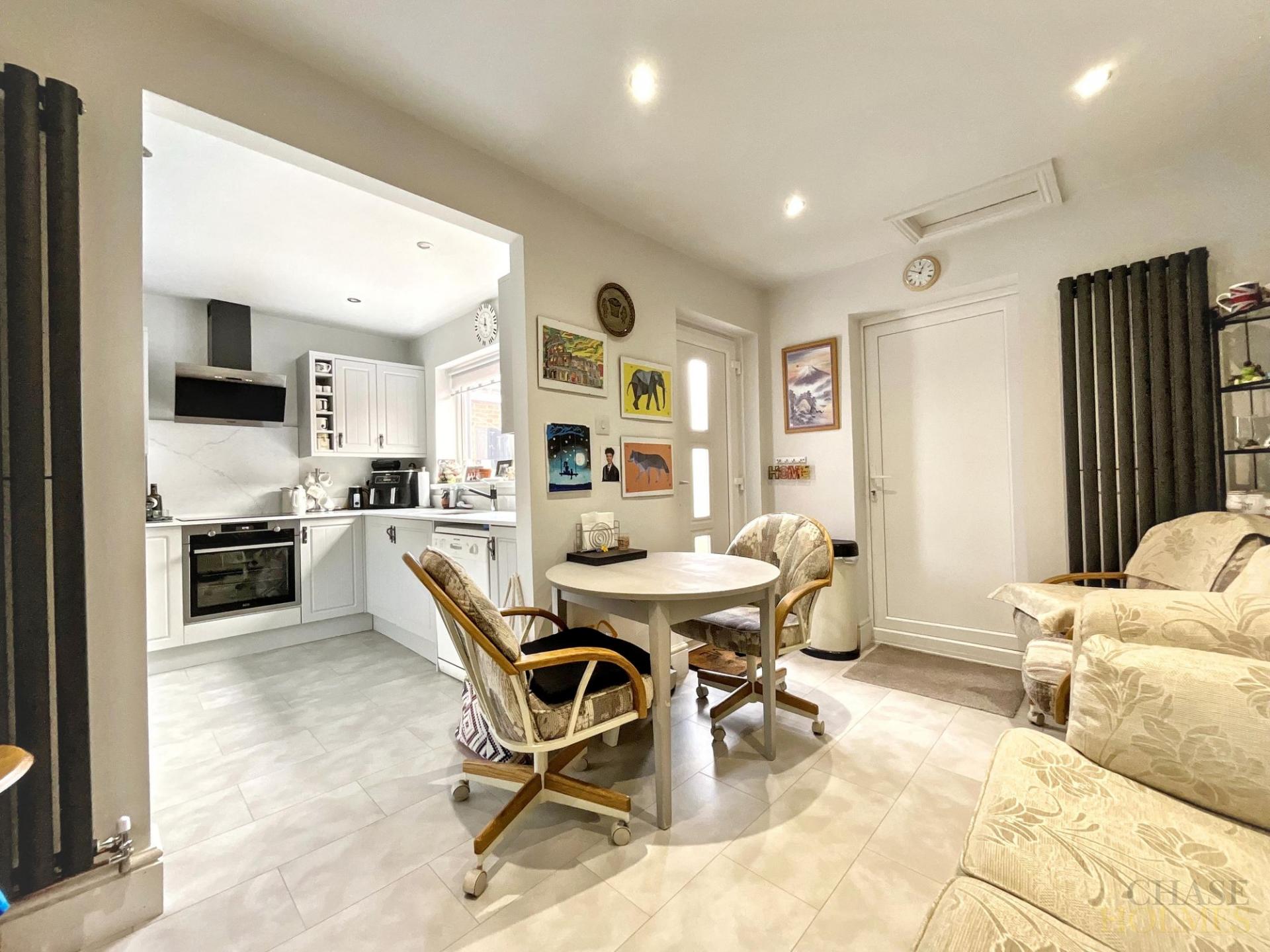 The property features a welcoming entrance hall that leads to a separate reception room, perfect for relaxing or entertaining guests. At the heart of the home is a contemporary open-plan kitchen diner, which boasts an integrated oven and induction hob, a freestanding dishwasher, and ample space for family meals. The dining area has direct access to the garage, which is equipped with electrics, sockets, a sensor light, water supply, and plumbing for a washing machine, providing excellent utility space. A convenient downstairs WC completes the ground floor.