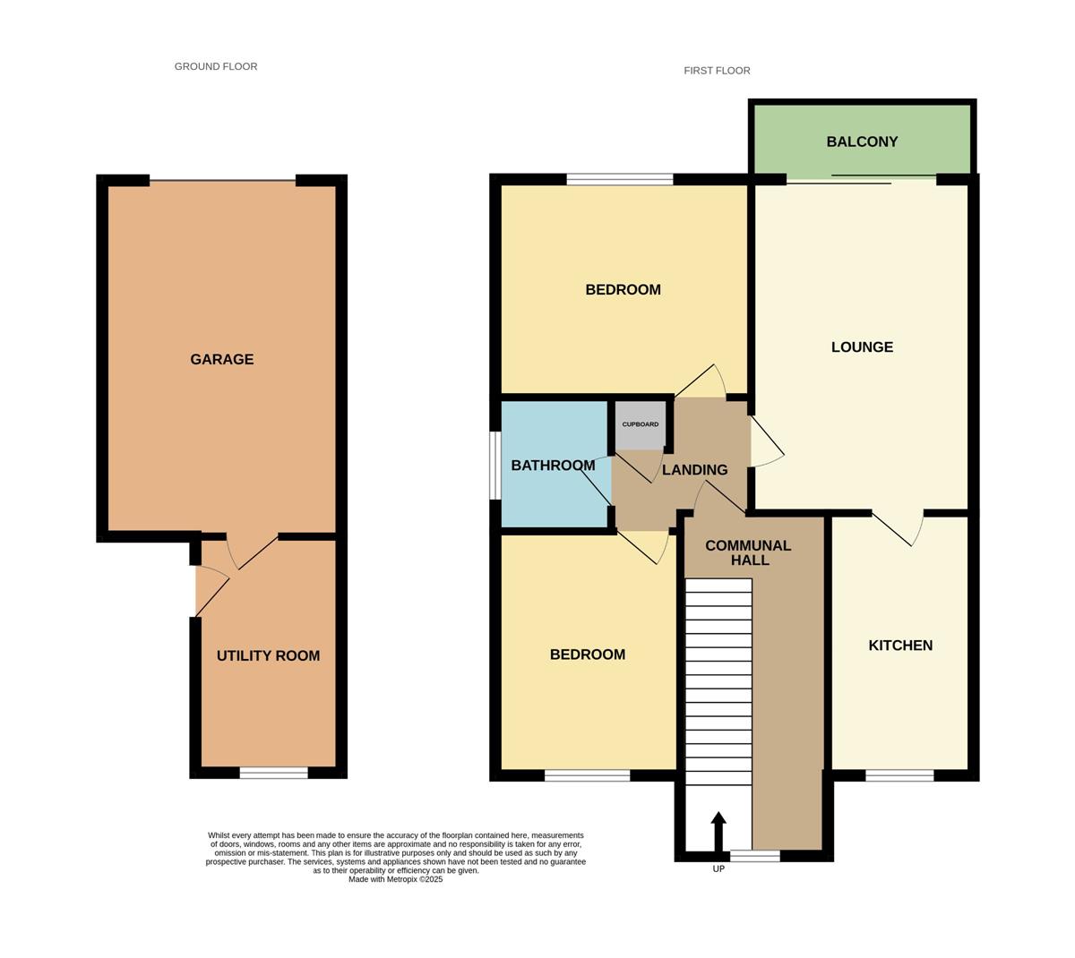 Access via communal entrance door to communal entrance hall solely serving Flats 1 & 2. Private ground floor door to utility room, stair flight to first floor with further private door