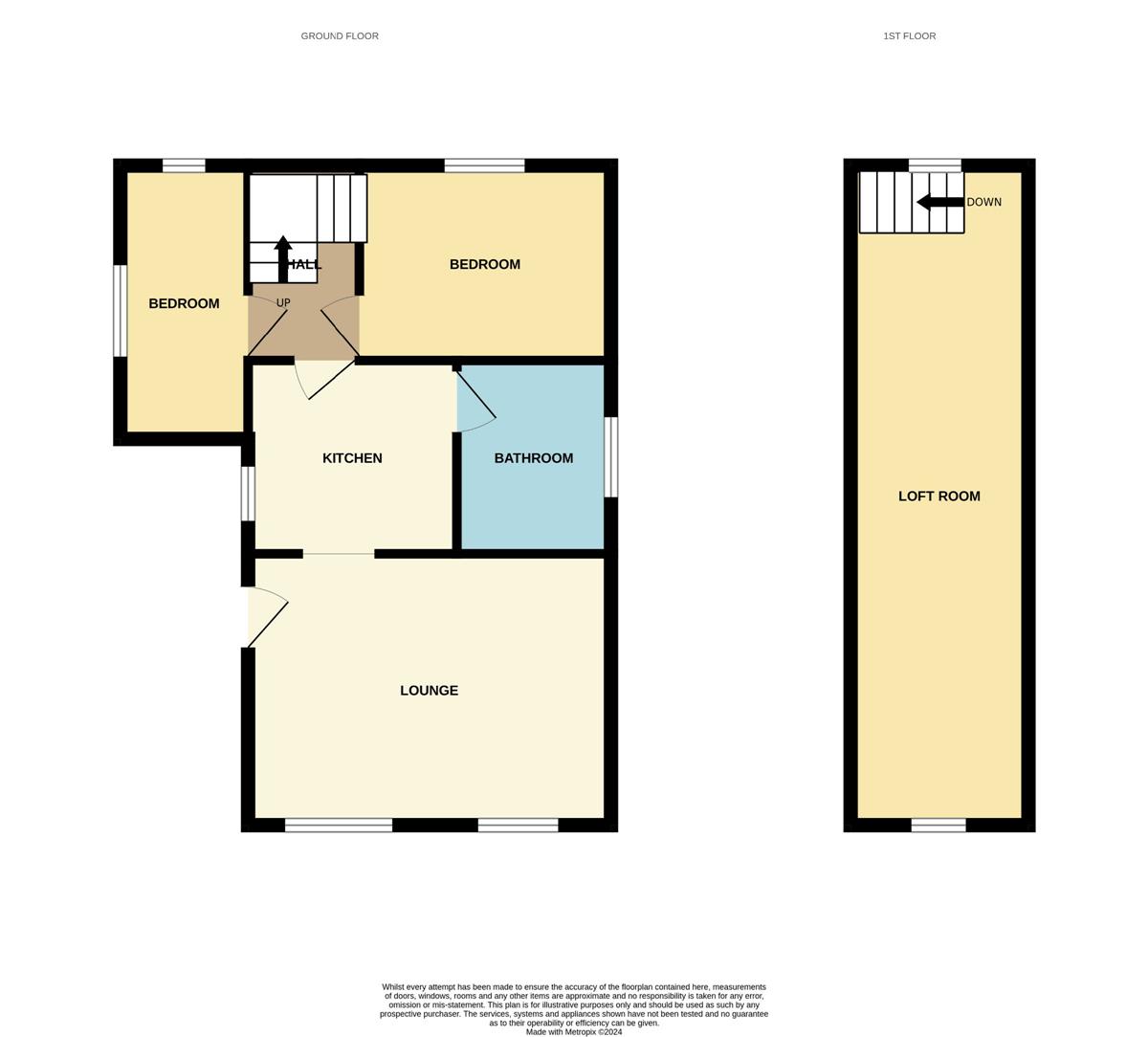 Stairs to loft room and access to both bedrooms