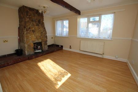 Two double glazed window to front, radiator, feature open fire place, open plan to