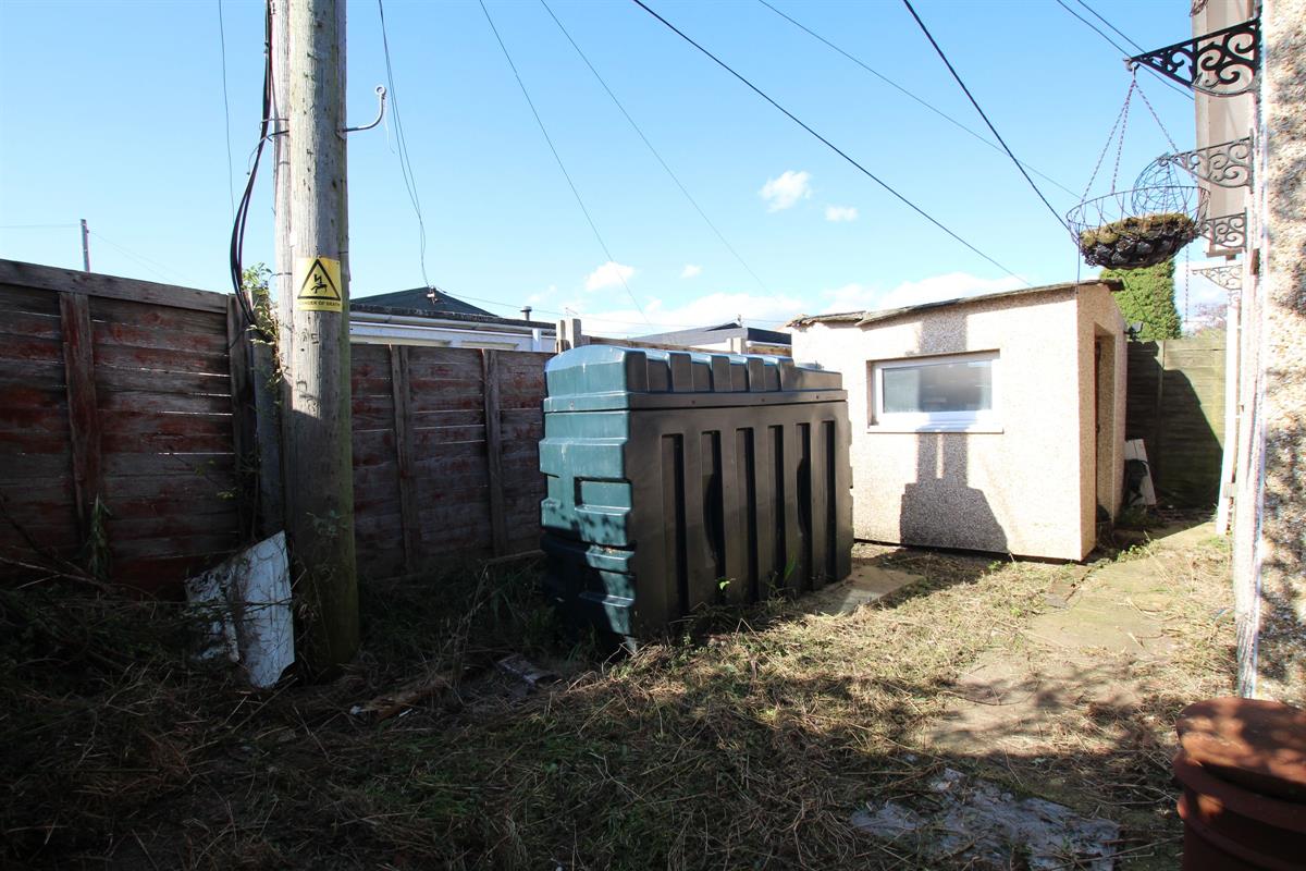 Courtyard style, oil storage tank and Oil boiler (currently not in working condition), Partly paved and enclosed by panel fencing.