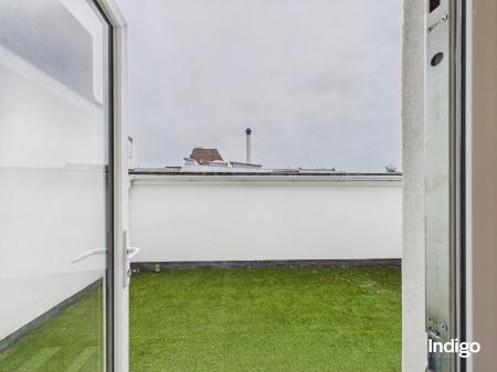 Having been completely modernised throughout, the property presents in immaculate condition and comprises two well-proportioned bedrooms, one of which benefits from a walk-in wardrobe, a contemporary shower room, and a bright open-plan living space incorporating a dining area and a fully integrated modern kitchen, ideal for both everyday living and entertaining. A separate, dedicated utility room is conveniently located on the landing. A particular highlight of this home is the private roof terrace, laid with artificial lawn to create a secluded and low-maintenance outdoor retreat, perfect for relaxing or al-fresco dining.