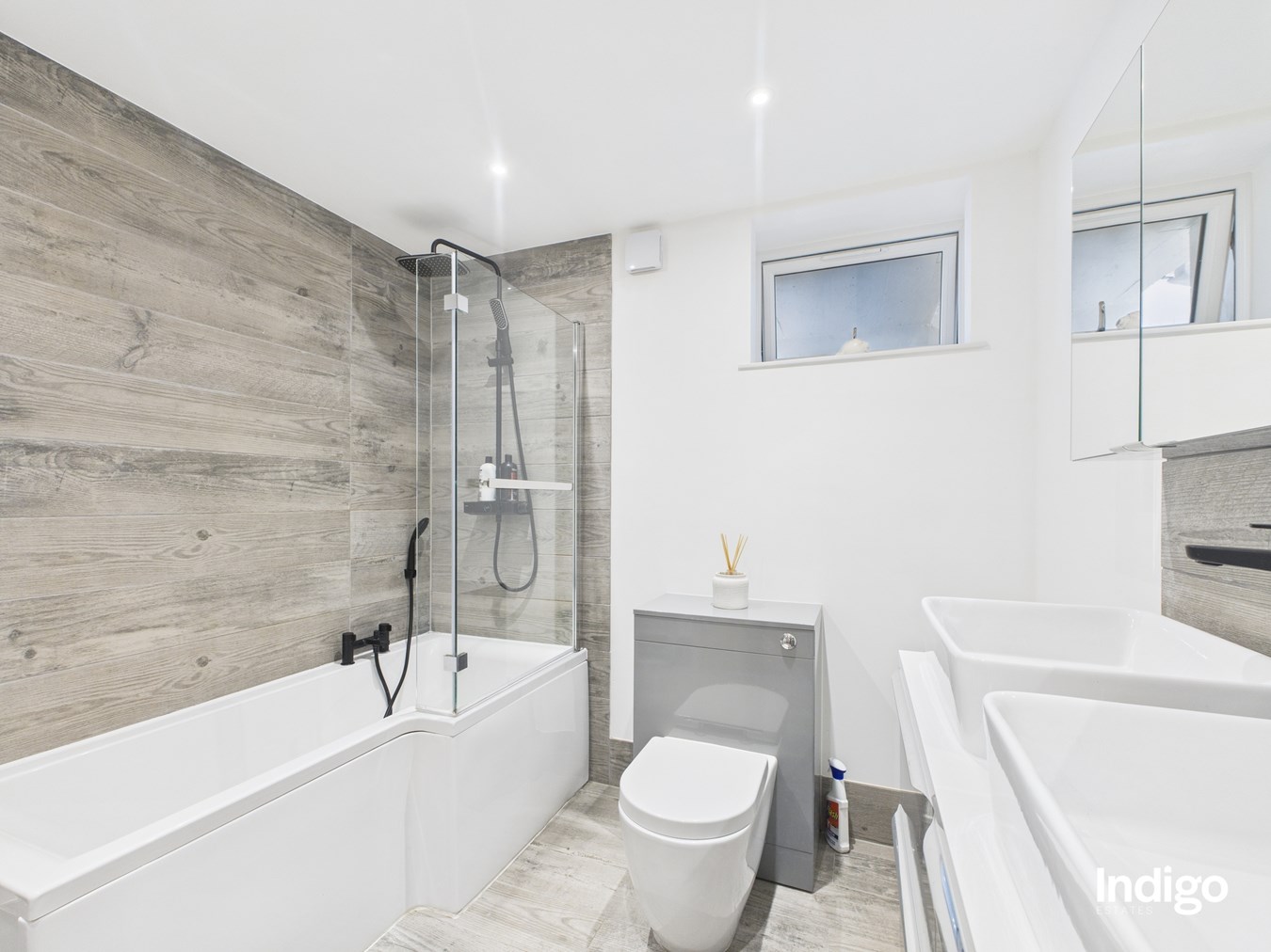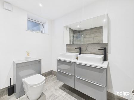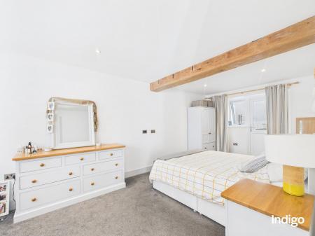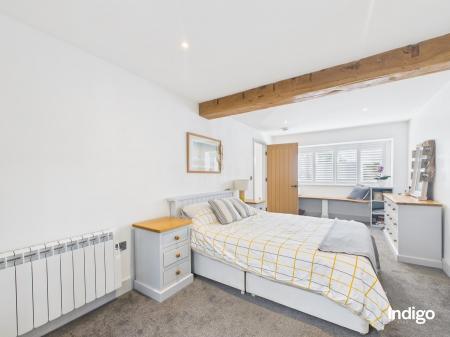 Finished to the highest standard throughout, the home offers a bright open-plan living and dining area with a fully integrated kitchen and breakfast bar, beautifully enhanced by exposed wooden beams. The large double bedroom also features exposed beams and direct access to an adjoining room, ideal as a utility space, home gym, or for additional storage, together with access to a private enclosed courtyard.