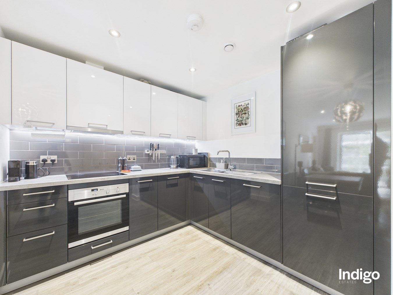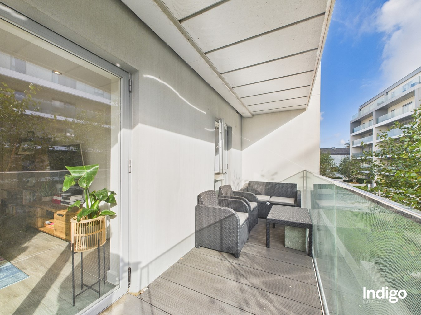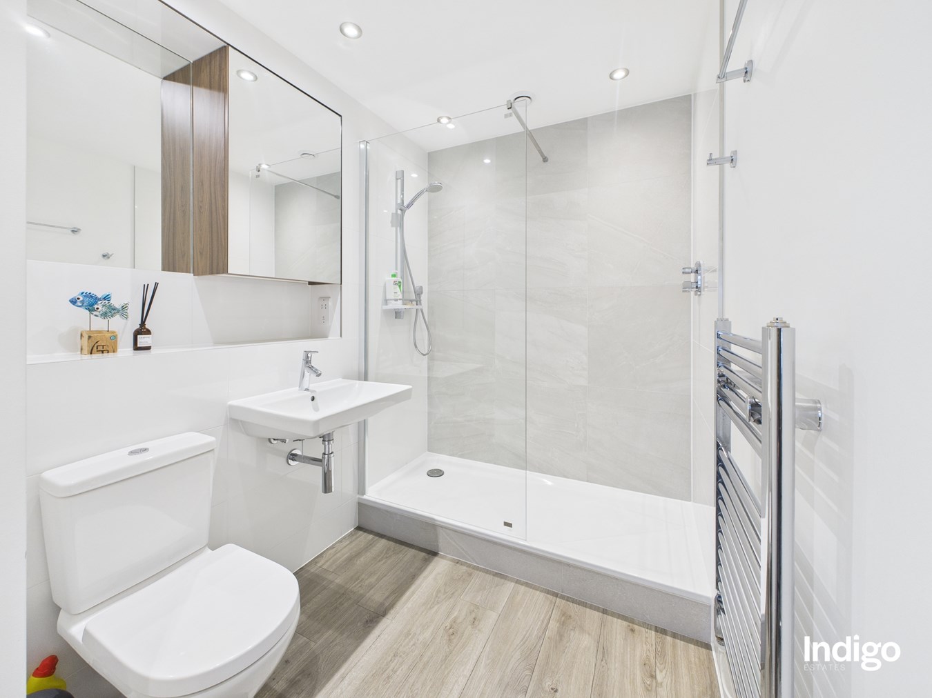 Beautifully presented throughout, the property features two double bedrooms and two bathrooms, including an en suite shower room and a jack and jill bathroom, together with a bright open-plan living and dining area and a fully integrated kitchen. The living space opens directly onto a large decked balcony with glass balustrade, perfect for enjoying morning coffee or evening relaxation.
