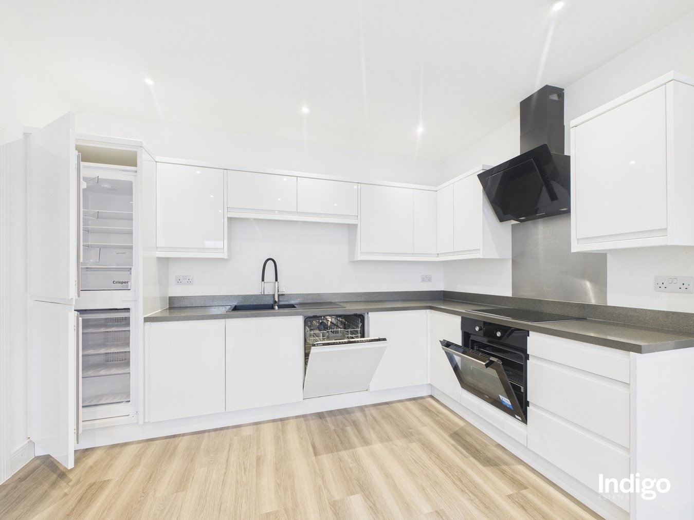 Beautifully finished throughout, the property features a generous open-plan living and dining area with a fully integrated kitchen, perfect for modern lifestyles.