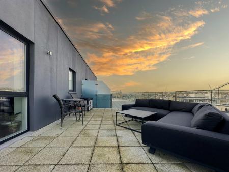 Positioned in the very heart of St Helier at Wests Centre, occupying the former site of an iconic Jersey cinema, this development, 16 Hilary Street, is less than two years old. Constructed to the highest specification, it has been cleverly and thoughtfully designed for optimum apartment living. New to market and with no forward chain, this penthouse apartment is situated on the 5th floor (lift access), and boasts incredible townscape views from its sizeable terrace. Look forward to enjoying those heady summer evenings with friends and family! Well equipped and with ample storage, the contemporary and stylish kitchen is open plan with the dual aspect generous living room, whilst both bedrooms are doubles, and both have en-suite facilities. For laundry convenience, there is a also a utility closet. Parking is secure, with one designated space and of special mention, is the unique Evie car service provided to the residents. Step out into the hustle and bustle of town, take the lift to your own sanctuary. Indigo Estates are delighted to have been appointed sole selling agent. Call us today!
