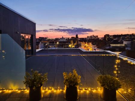 - Roof terrace with panoramic town views