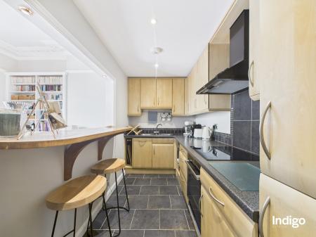 Offering two double bedrooms, a house bathroom, and a generous open-plan lounge with dining space, the property also benefits from a fitted kitchen with breakfast bar opening into the living area, as well as excellent storage.