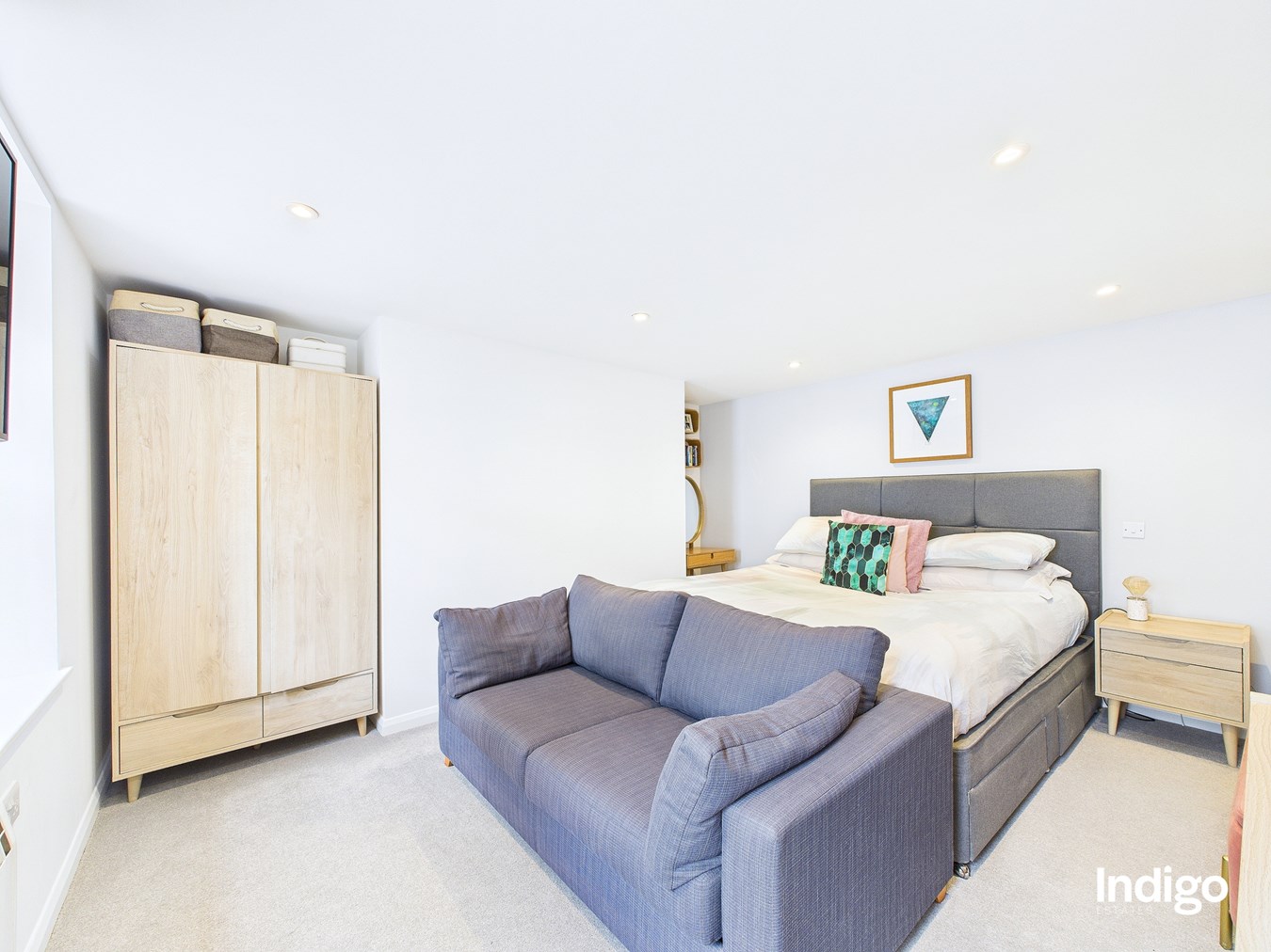 The ground floor comprises two generous double bedrooms, both with elegant en-suite bathrooms, together with a cloakroom and a spacious utility room offering excellent additional storage. Upstairs, the vaulted ceilings create a sense of space and light, complementing the open-concept living room and large, fully integrated kitchen with formal dining area, ideal for entertaining and relaxed coastal living.