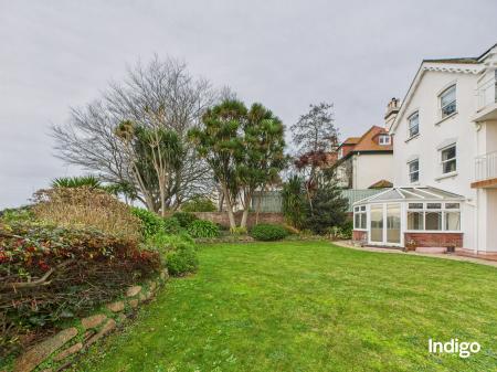 Residents enjoy a south-facing communal lawn surrounded by mature trees and shrubs, creating a sheltered green outlook. The apartment also benefits from ownership of a communal strip of land which is located on the seafront.