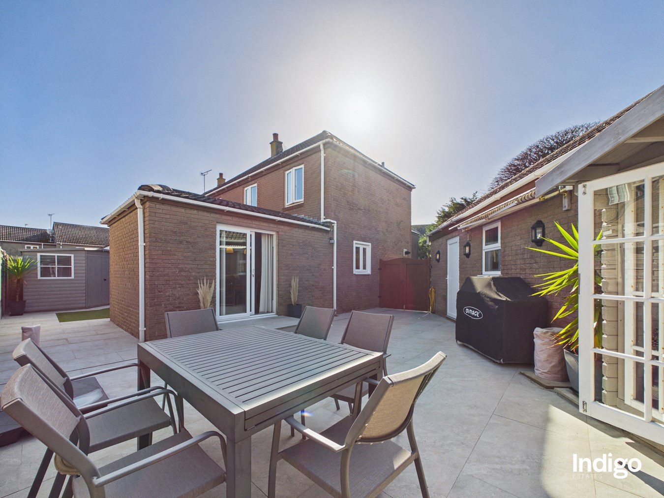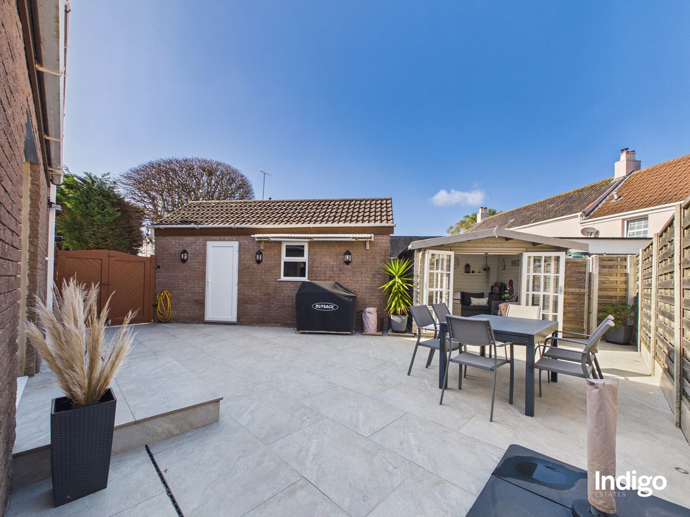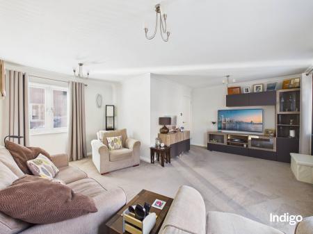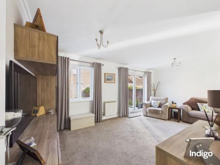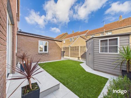 Externally, the home enjoys wrap-around enclosed gardens designed for easy maintenance, including areas laid with artificial lawn and a patio providing ample space for al fresco dining and outdoor relaxation. A garage with an adjacent utility room adds further practicality, while the property also benefits from up to three additional parking spaces.