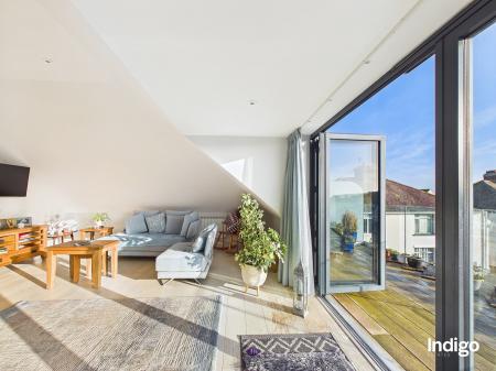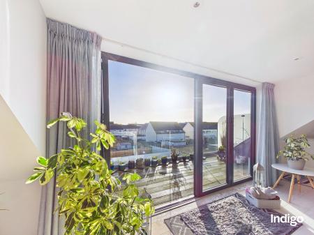 Bi-folding doors lead from the living space onto a superb south-west facing decked balcony with glass panelling, creating a wonderful extension of the living area and an ideal setting to enjoy afternoon and evening sun. A further balcony off the main living and dining area floods the interior with natural light. Externally, the property benefits from two tandem off-road parking spaces and a storage shed. The building offers lift access to all floors for ease and accessibility.
