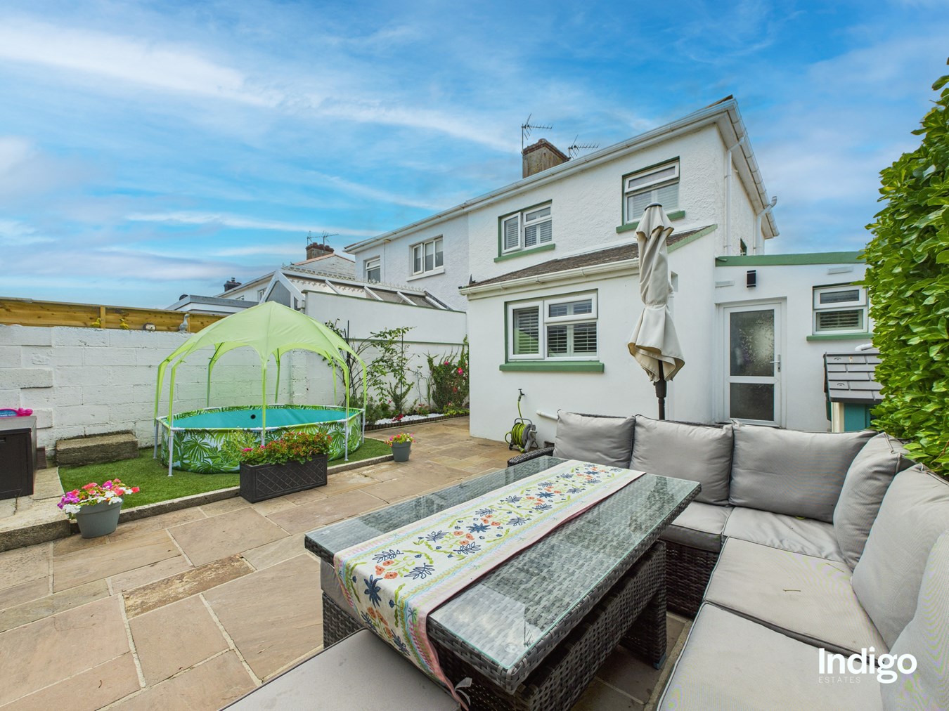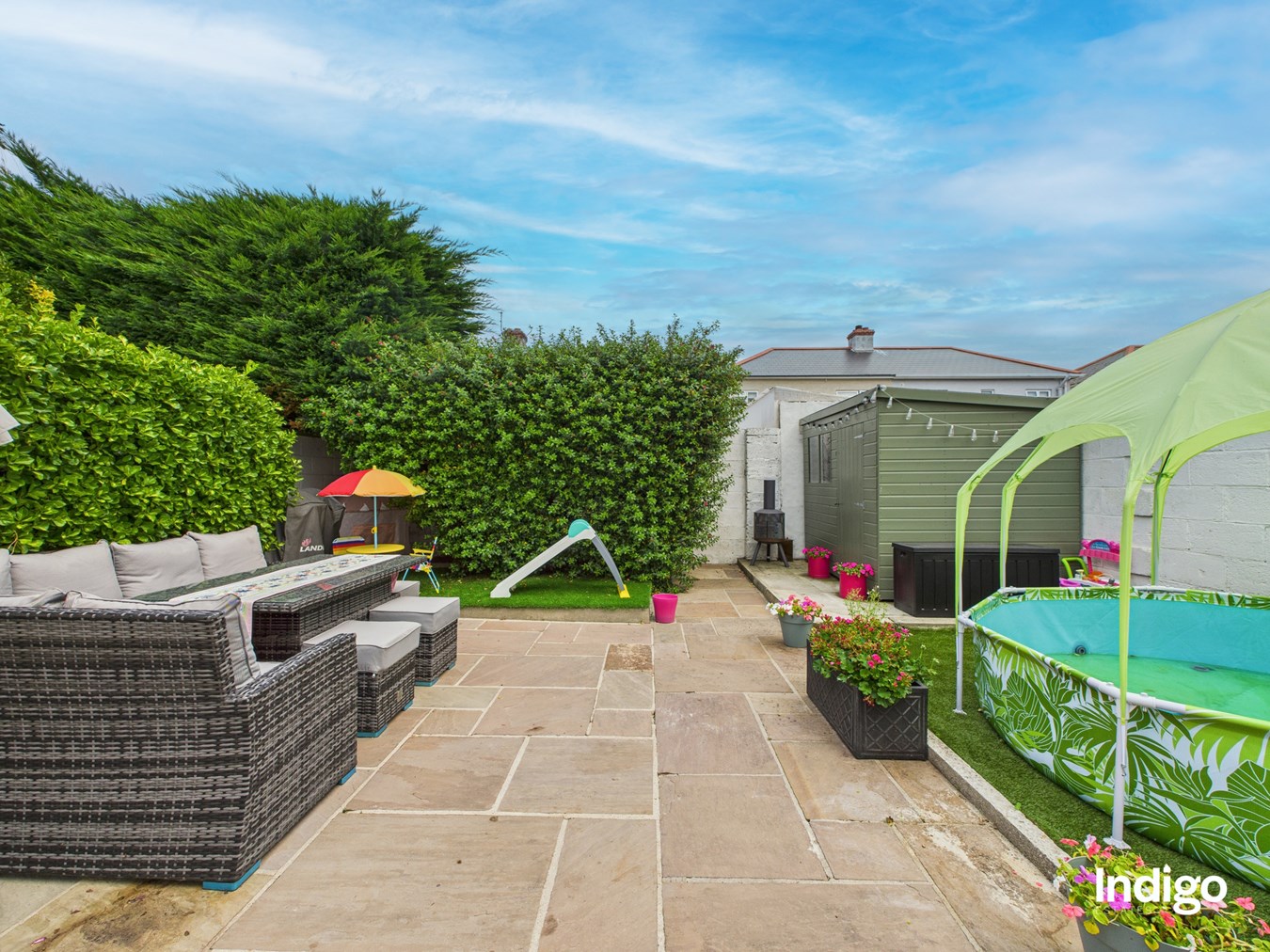 - Enclosed paved garden with storage shed