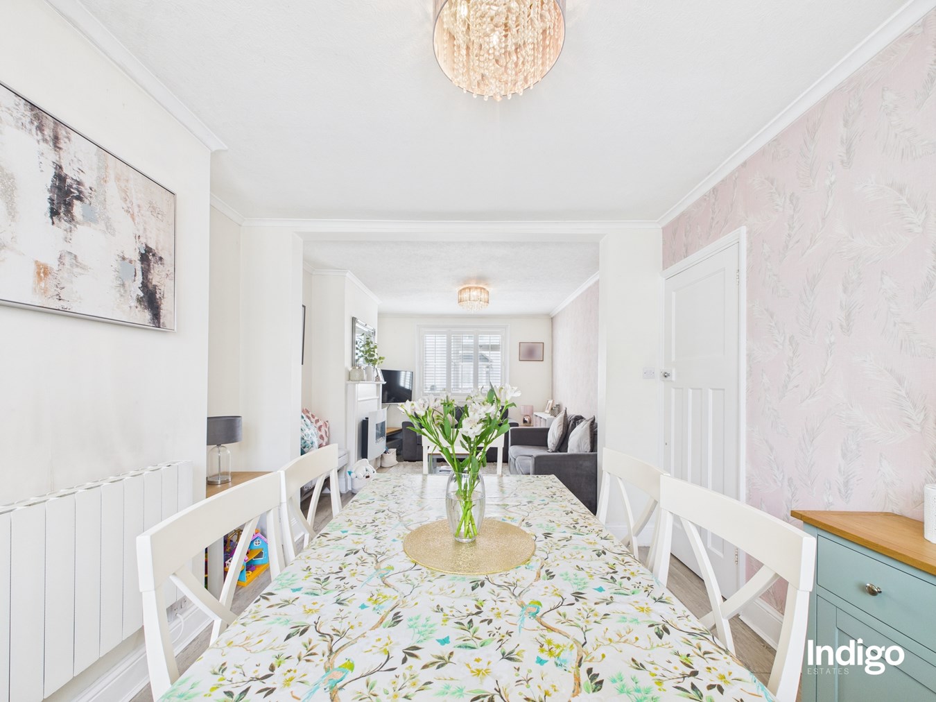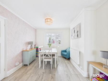 The accommodation is well arranged, comprising three bedrooms and two bathrooms, including a modern downstairs walk-in shower room and a cloakroom for added practicality. A cosy lounge flows seamlessly into the dining area, creating a warm and inviting living space, while the kitchen benefits from a useful breakfast bar, ideal for everyday family life.