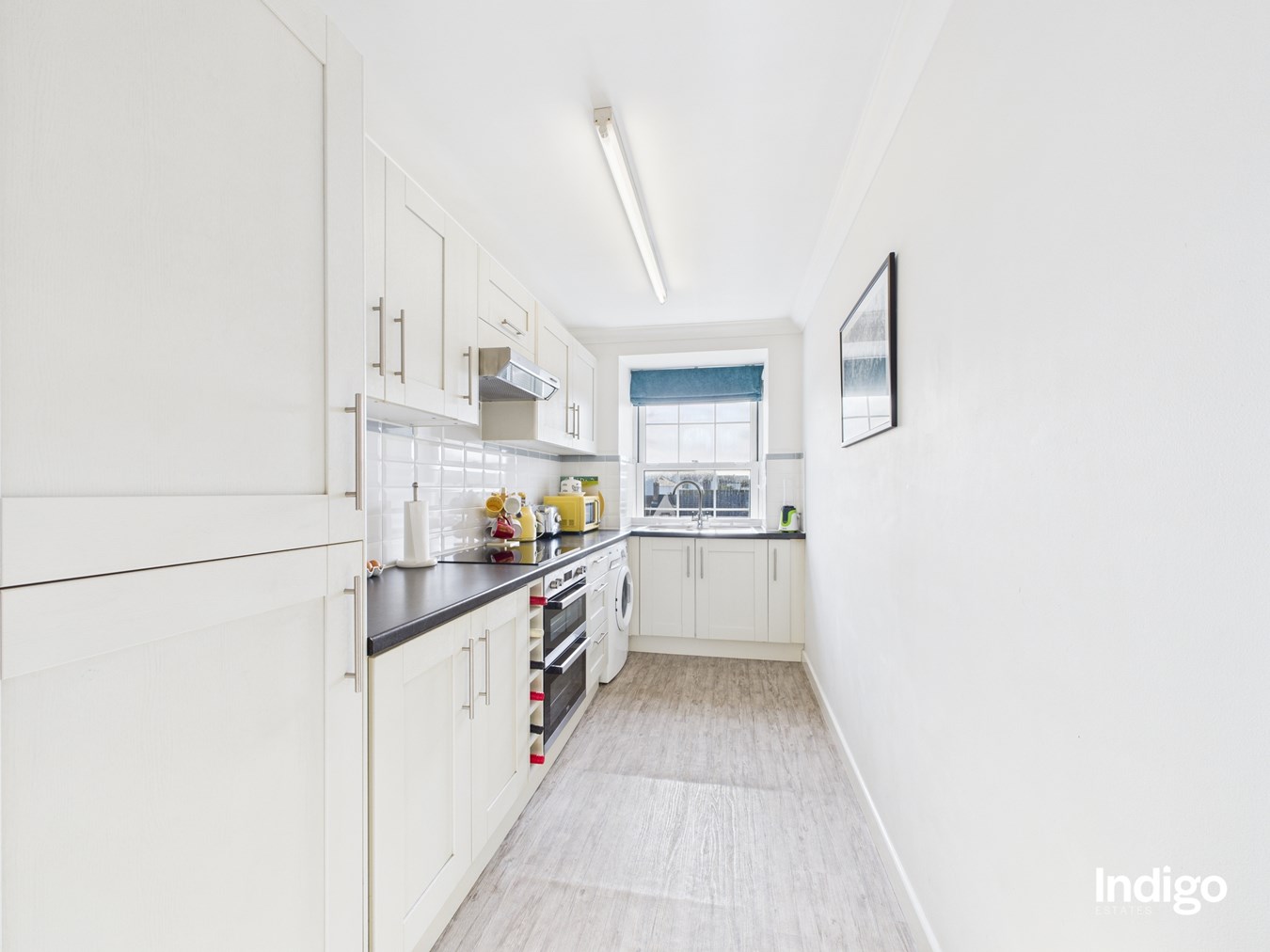 A separate, fully integrated contemporary kitchen provides all the modern conveniences, while two well-proportioned bedrooms are served by an modernised bathroom. The property also benefits from one off-road parking space.