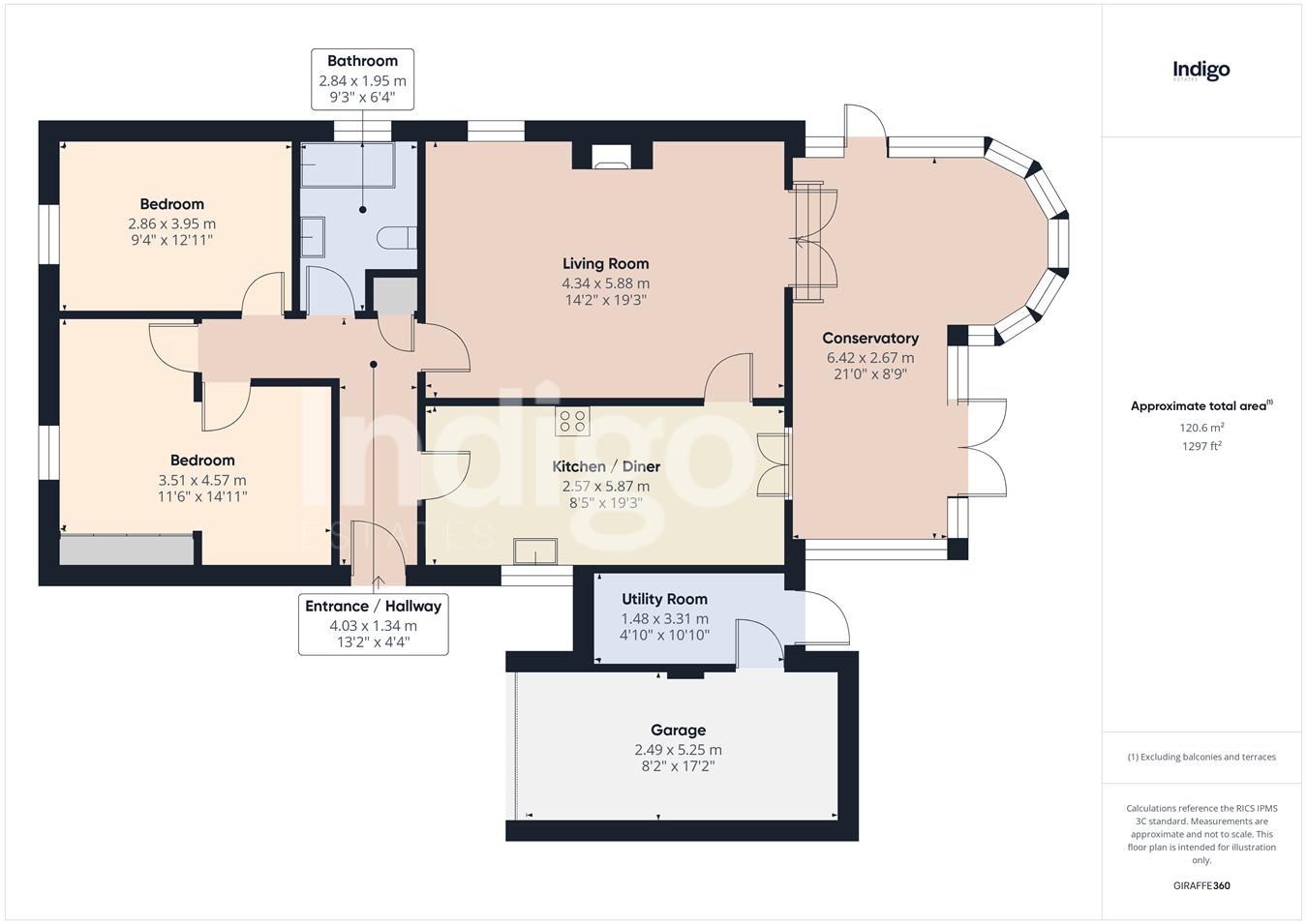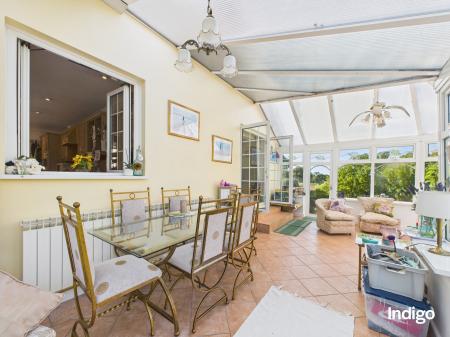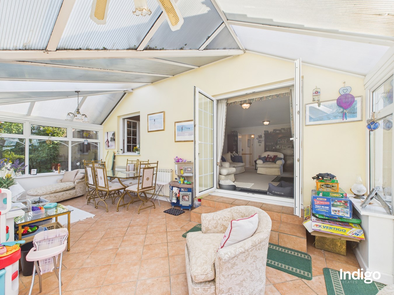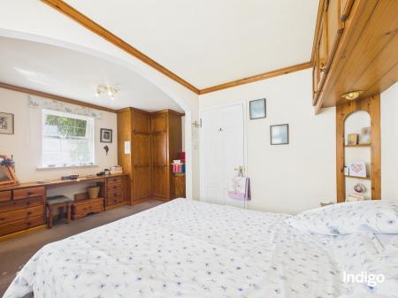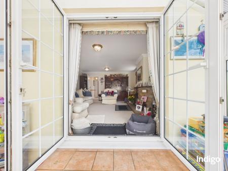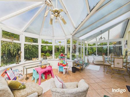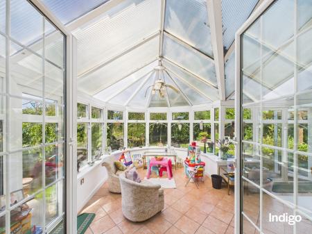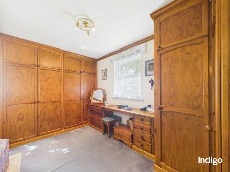 The accommodation includes two double bedrooms, one of which features a dressing room area, a modern house bathroom, a bright and spacious living room, an eat-in kitchen with dining space and a large conservatory. A utility room, single garage and excellent storage further enhance the practicality of the home.