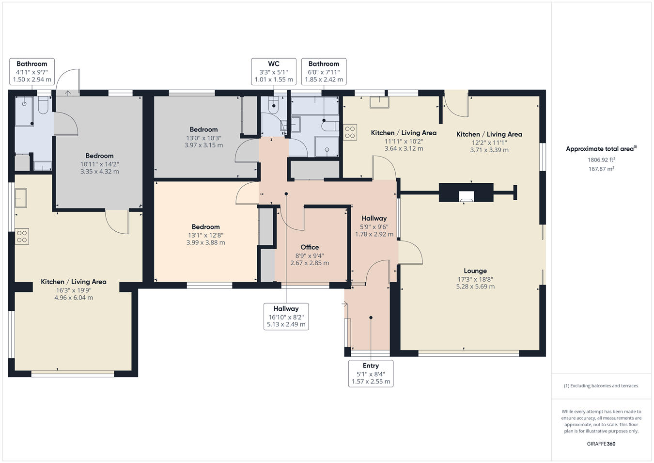 - Four bedrooms and two bathrooms