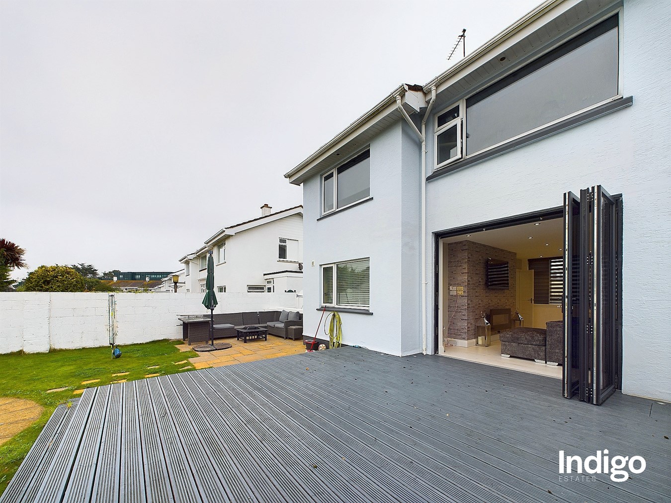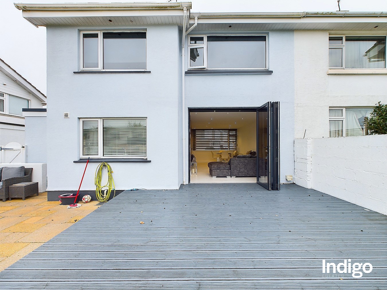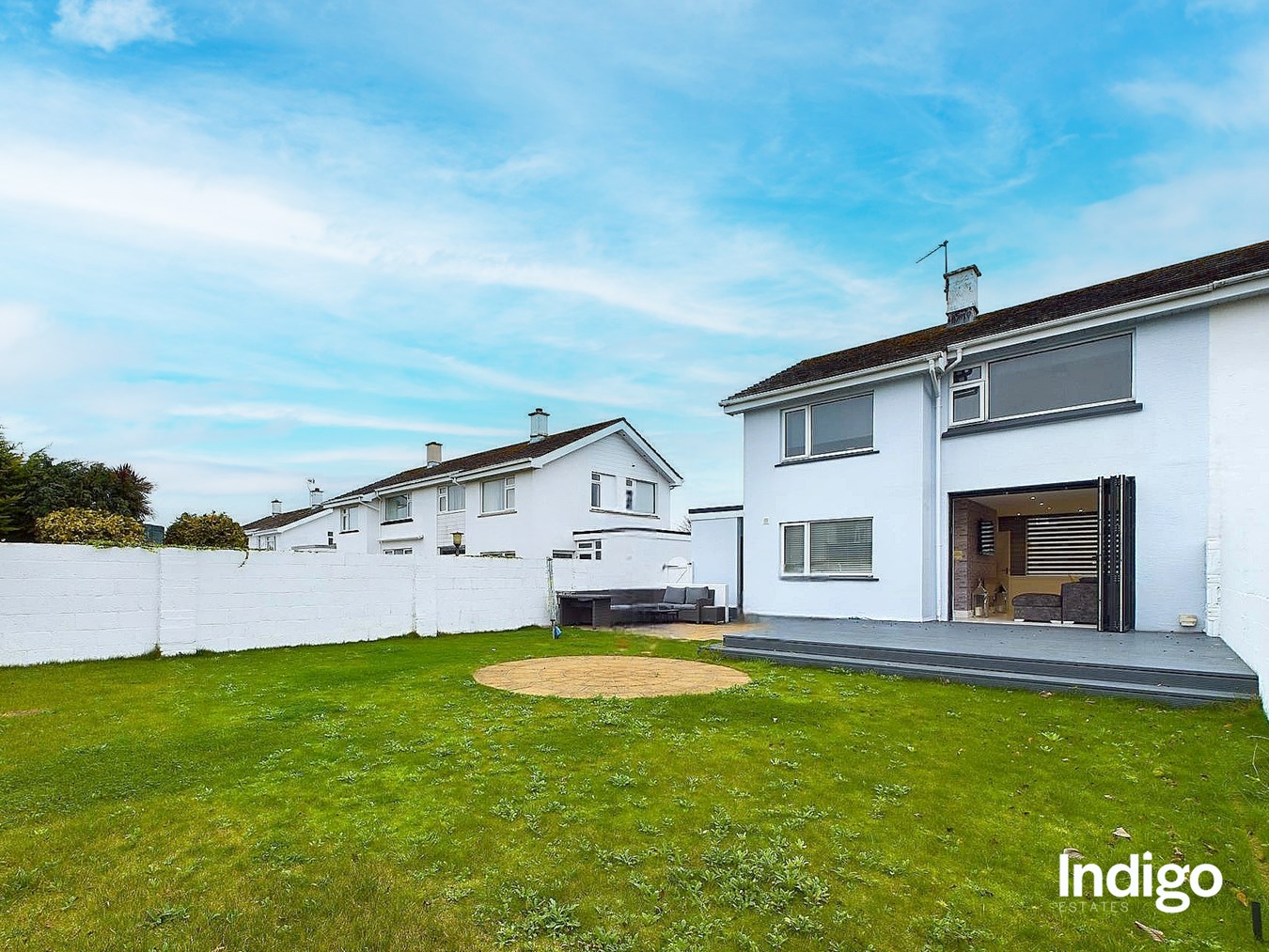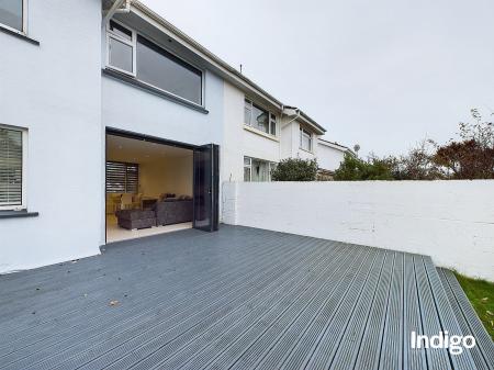Featuring three well-proportioned bedrooms and a contemporary house bathroom, the layout is perfect for family living. A generous eat-in kitchen complements the spacious lounge/diner, where bi-fold doors seamlessly open onto a large, sunny rear garden, complete with a raised decked area, ideal for al fresco dining, and a lush south-west facing lawn for outdoor play.