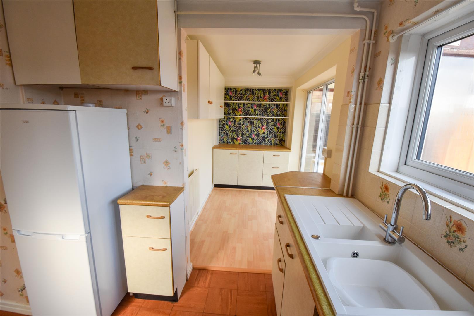 L-Shaped Kitchen / Diner - 5.31m x 3.56m (17'5 x 11'8) - Wall and base units with work surface over. Dining area with additional storage cupboards. Space and plumbing for appliances. Sliding doors through to :