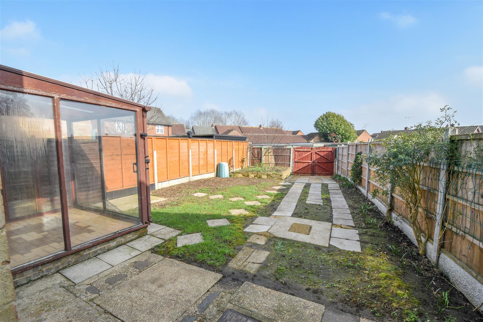 Exterior - Rear Garden - Commencing with a hardstanding offering patio space. There is a further hardstanding at the bottom of the garden which is suitable for parking, and is accessible via double wooden gates from the rear. The remainder of the garden is laid to lawn.