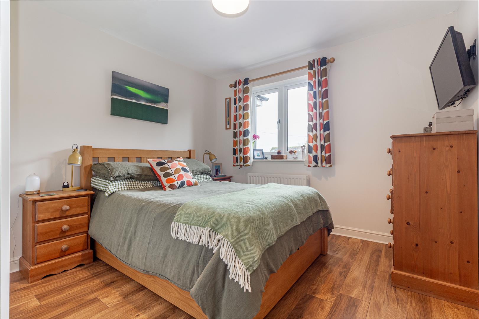 Bedroom One - Double glazed window to the front aspect. Wood laminate flooring. Built-in wardrobe. Door leading to:
