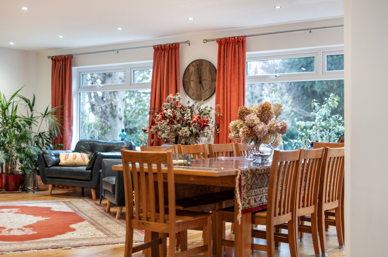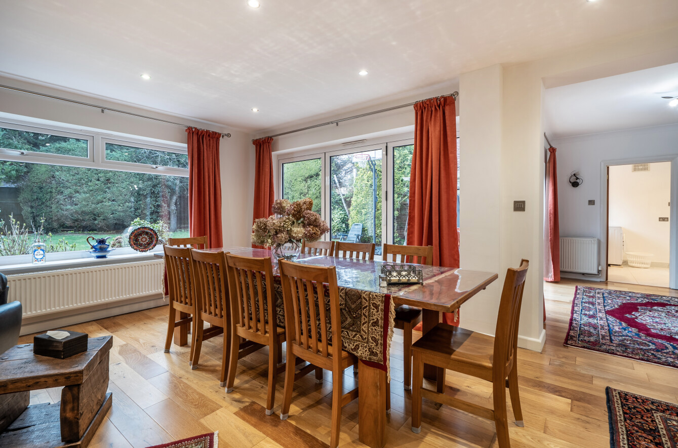 The three large reception rooms seamlessly open into one another, creating a wonderfully connected space ideal for both day-to-day living and entertaining. Wood flooring runs throughout the area, linking the rooms together and enhancing the sense of flow.