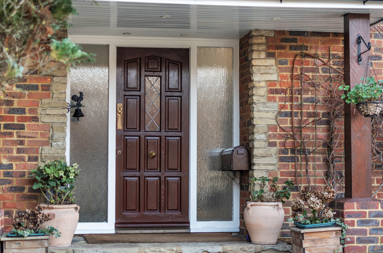 There is a very pleasant feel to the road, with grass verges and substantial properties lining the street. To the front of the house is a landscaped crazy-paved carriage driveway providing off-street parking for several cars, while diamond-leaded windows add character to the front elevation.