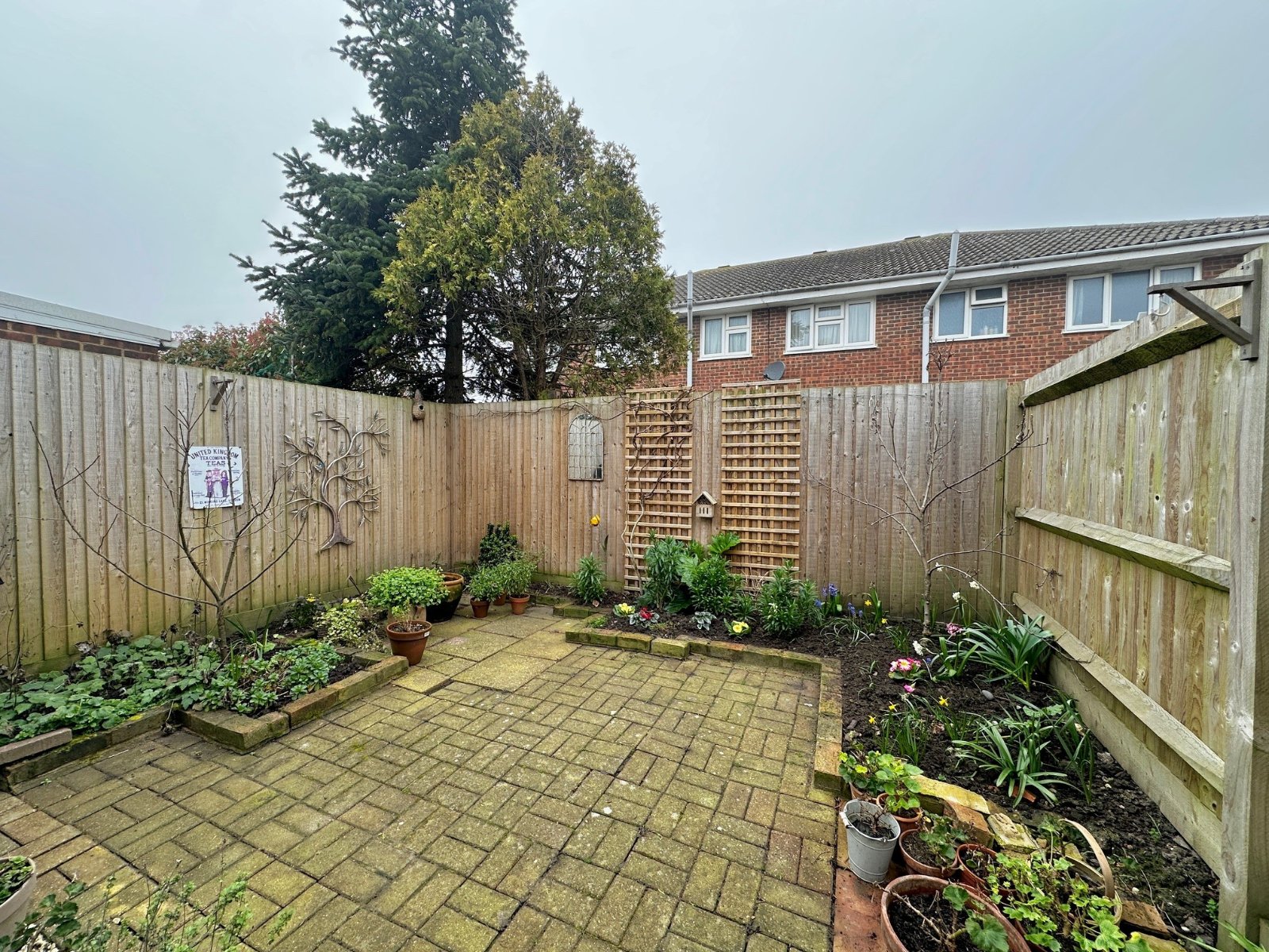 To the front of the property there is a small paved garden and to the rear a fully enclosed west facing garden. The space is low maintenance with block paving edged by flower beds. Further benefits include a garage with a private parking space in front, situated at the end of the terrace.