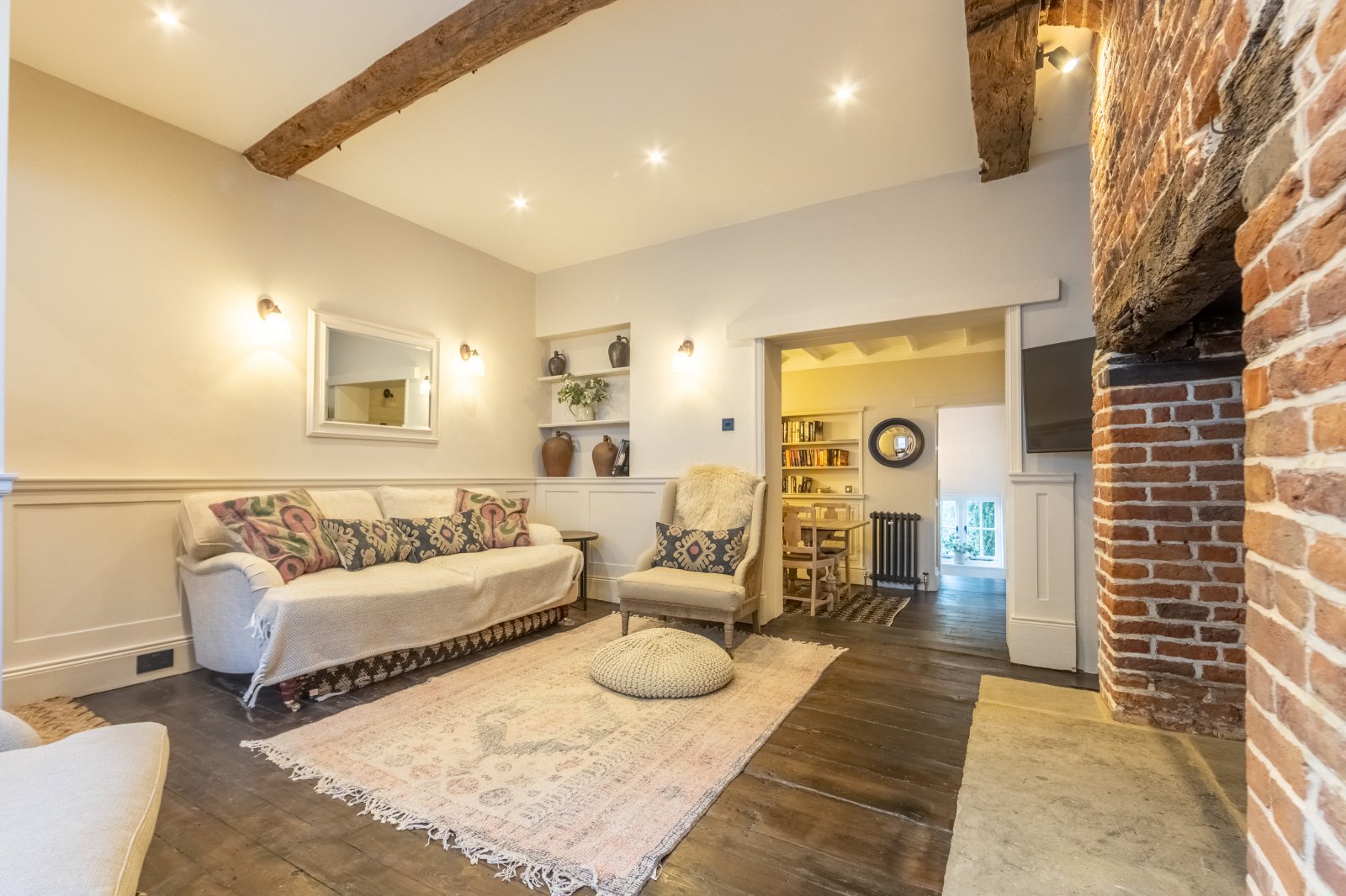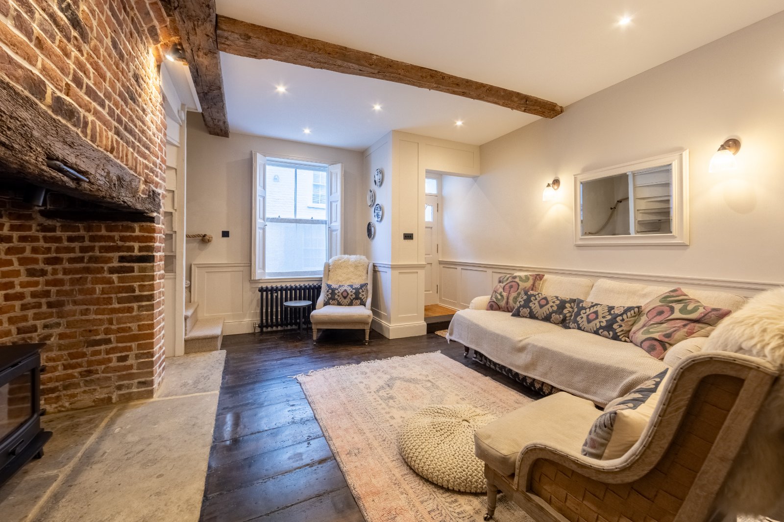 The property has undergone a meticulous and sympathetic back-to-brick restoration. The result is a beautifully curated home where contemporary, tasteful interiors sit comfortably alongside exposed brickwork, original beams and retained period features, creating a calm, refined aesthetic throughout. The accommodation extends to approximately 1,140 sq ft and is thoughtfully arranged over three floors.