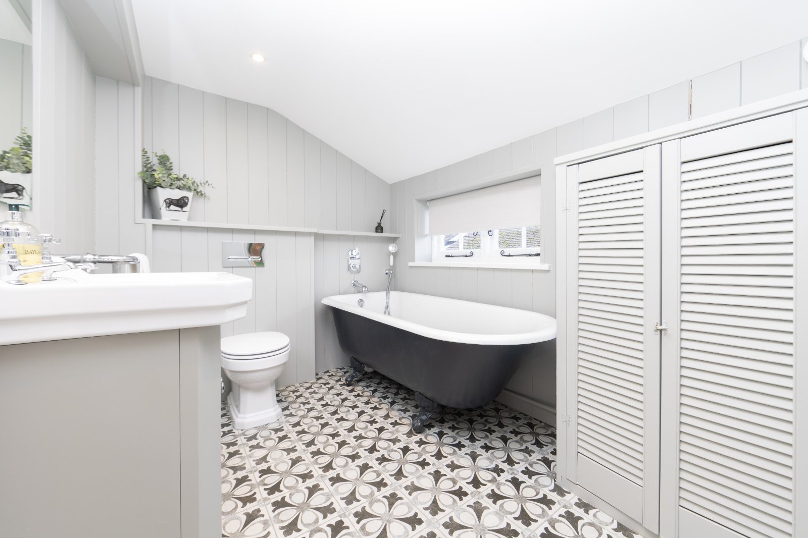 The upper floors are given over to two large double bedrooms. The principal bedroom, occupying the first floor, is a standout feature and benefits from a luxurious en-suite bathroom finished in Carrara marble, complete with a freestanding bath and walk-in shower, offering a boutique hotel-style experience. The second double bedroom is located on the top floor and benefits from an en-suite WC.
