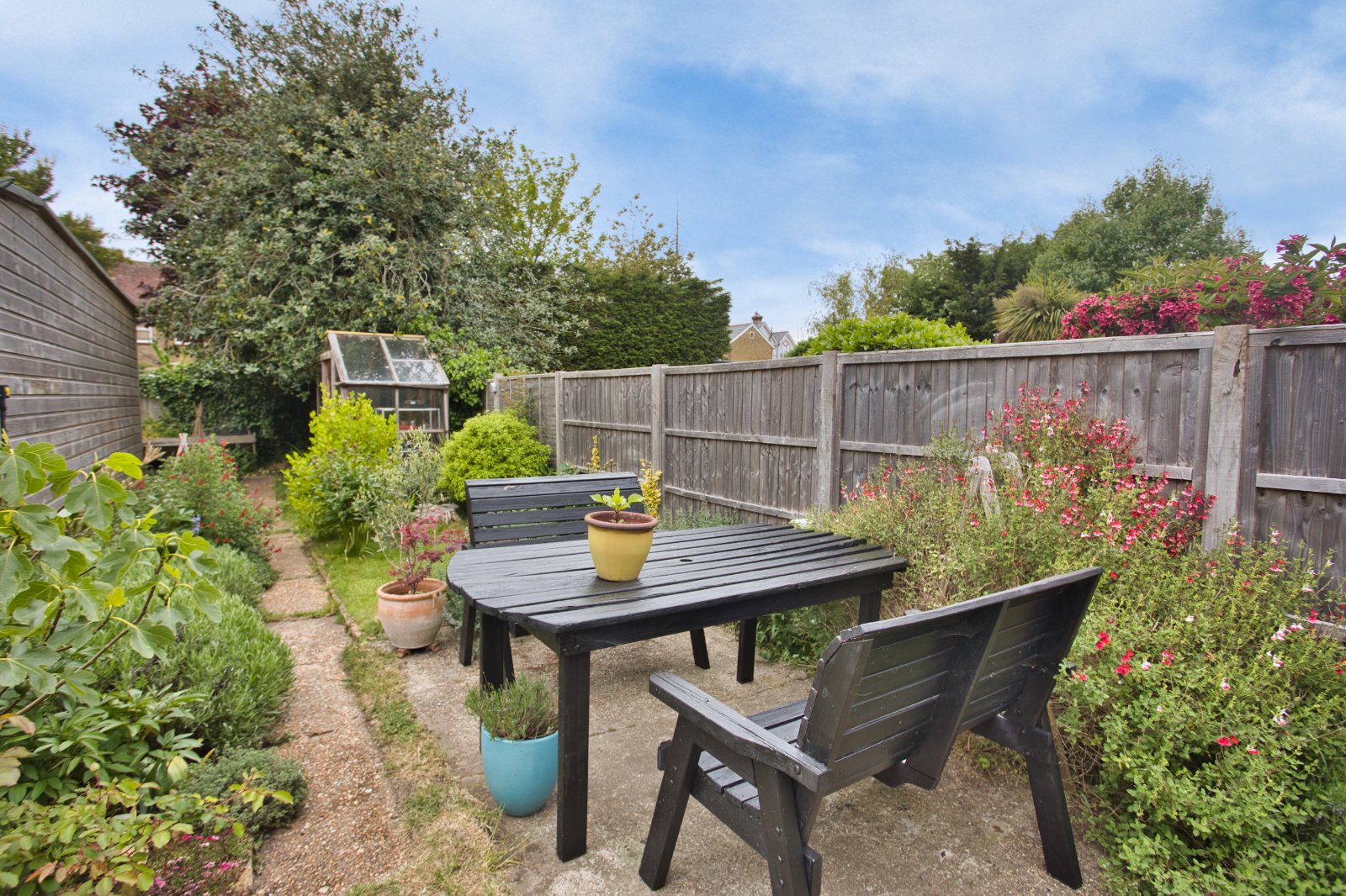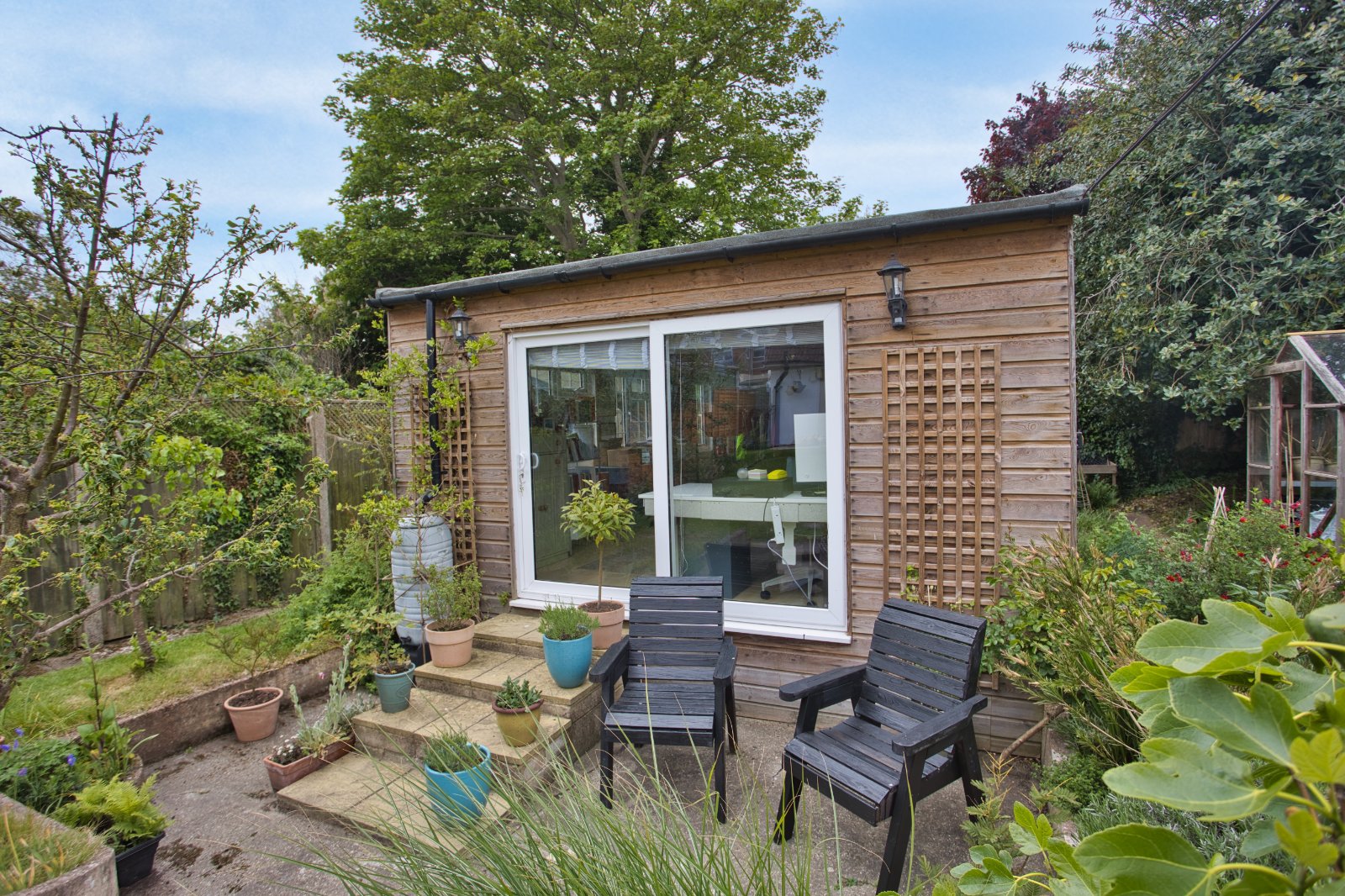 The garden is a generous size, comprising of mature trees, shrubs, and a selection of well stocked flower beds. A large studio, which doubles as an office and occasional bedroom, is located at the bottom of the garden, offering a versatile space complete with electricity and its own consumer unit. A further brick built shed offers useful storage. To the front there is a pretty garden and off road parking.