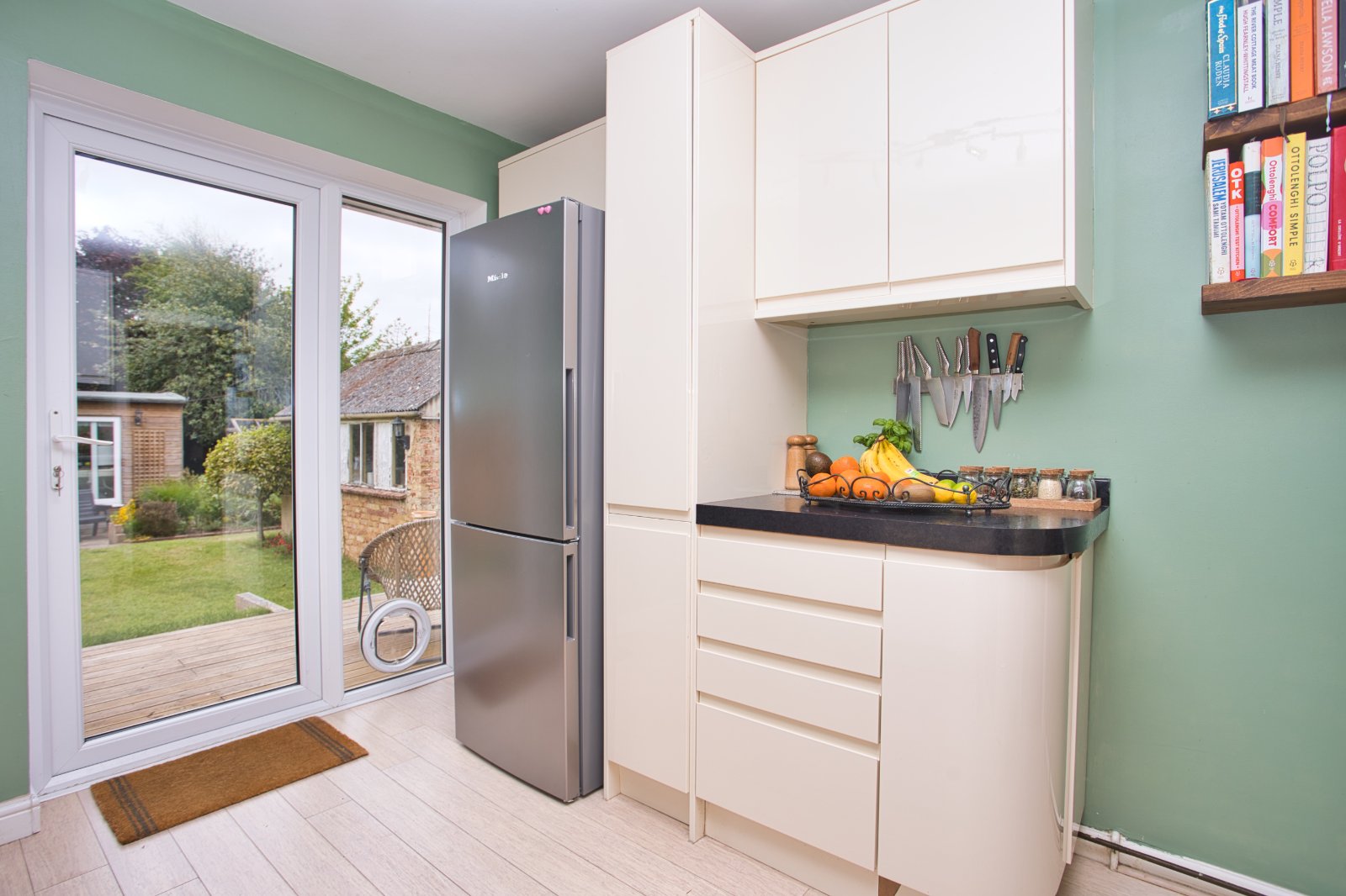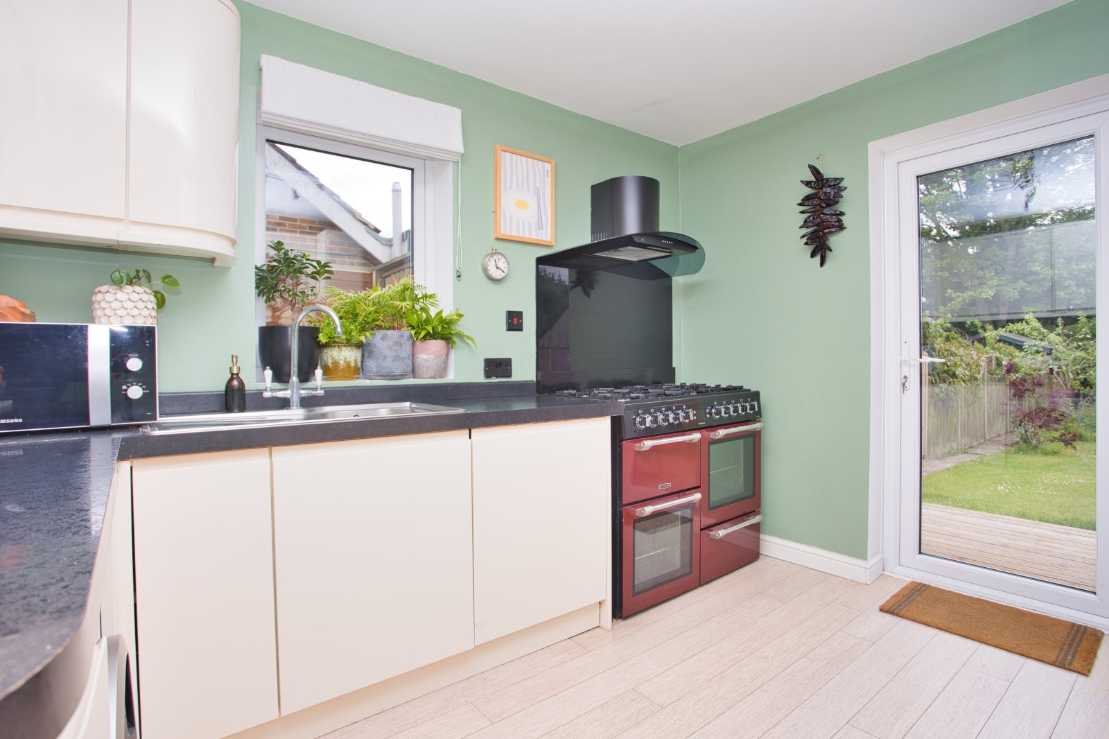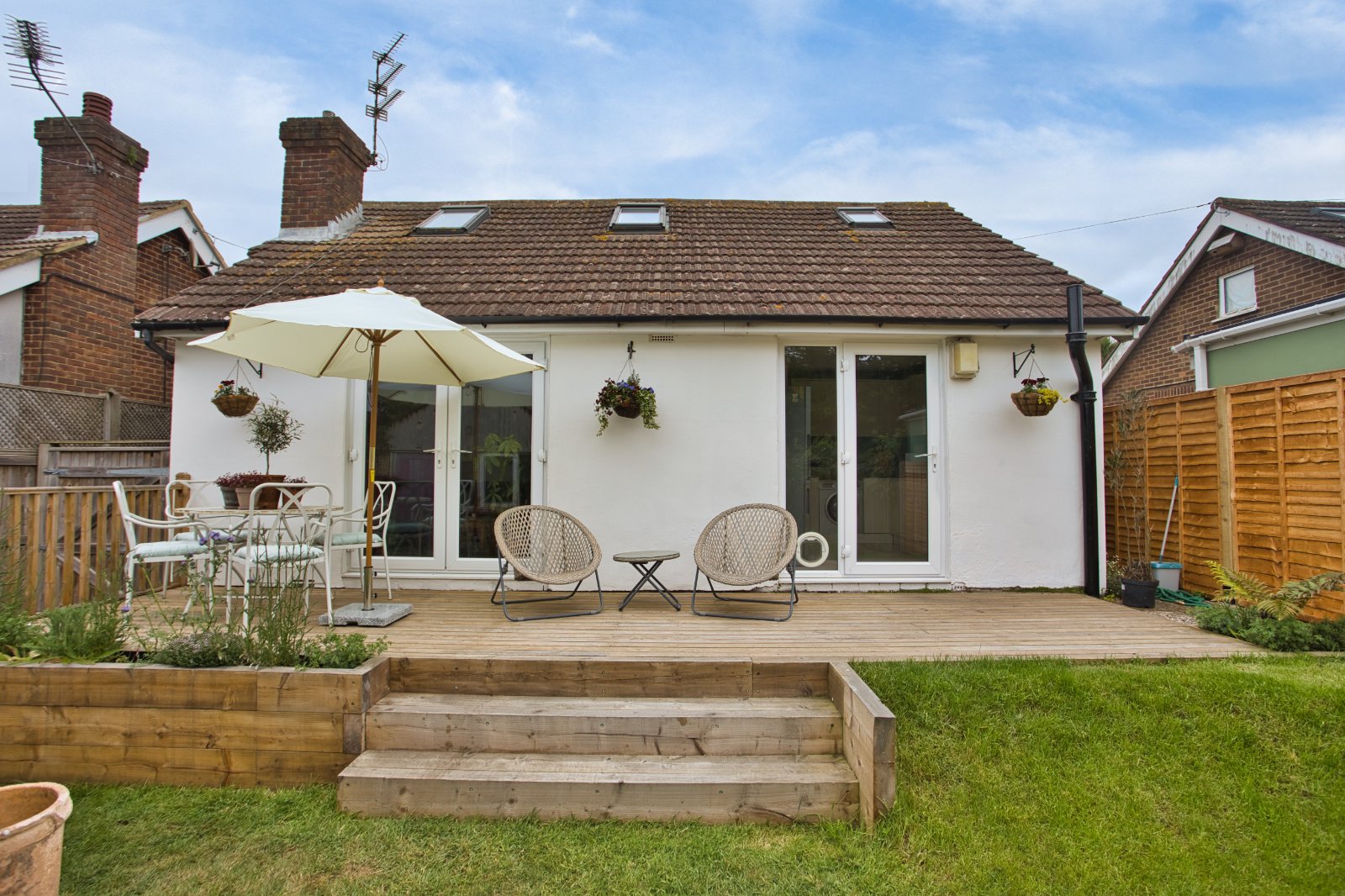 Accessed from the kitchen and living/ dining room, doors lead seamlessly onto a large decked area to enjoy al fresco dining.