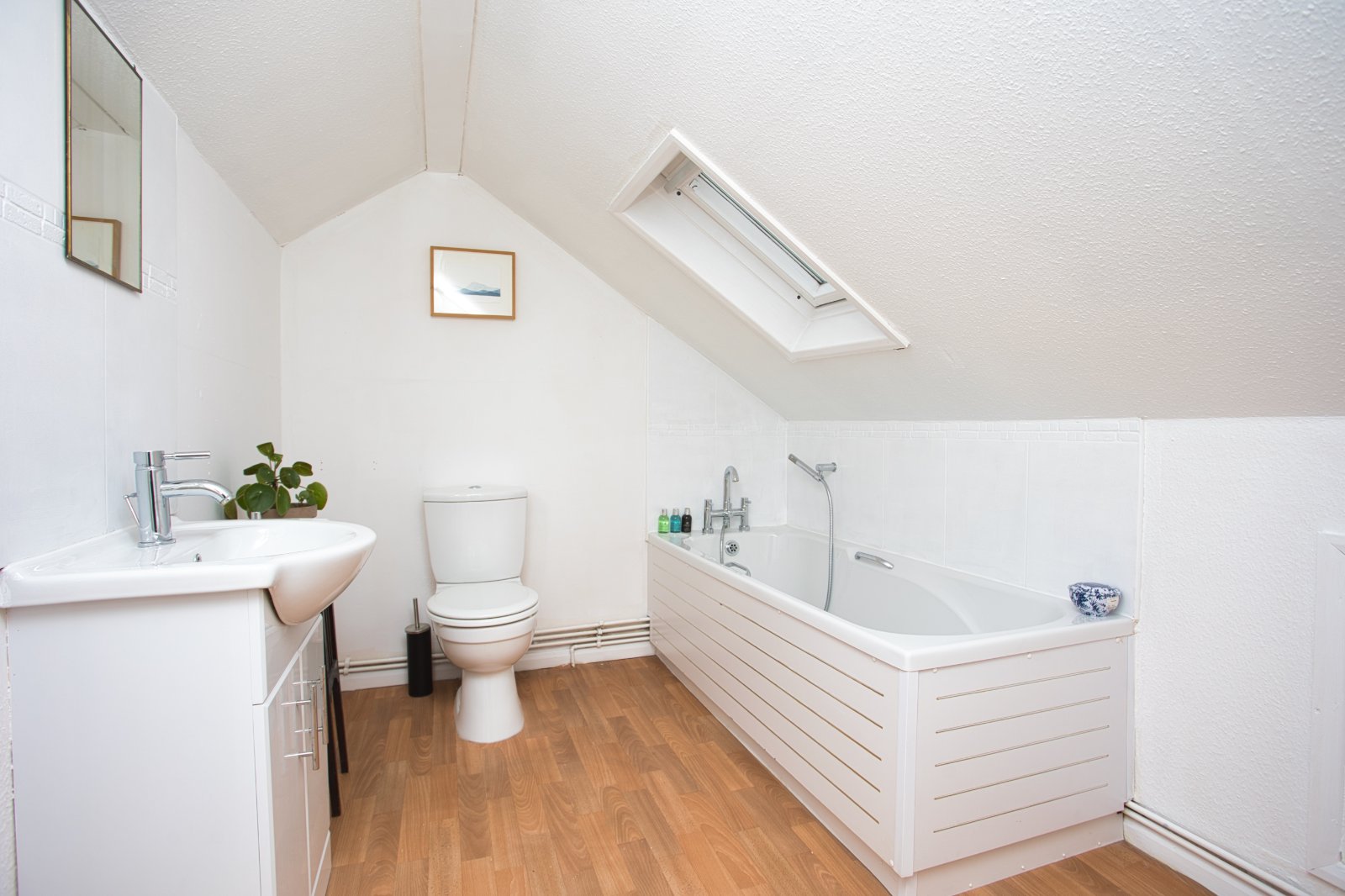The loft room is accessed via a solid staircase from the second bedroom. It currently comprises of a double bedroom and full bathroom, complete with velux windows on both elevations of the roof.