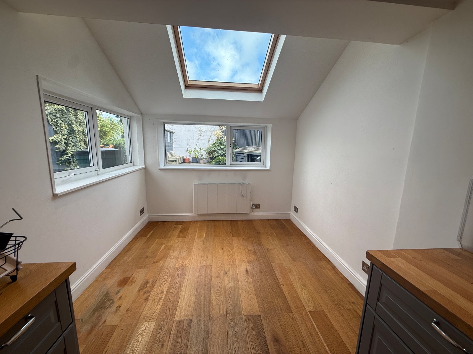 To the rear of the house, the utility room gives access to a south and east facing fully enclosed garden. This is mainly laid to lawn. Towards the end of the garden is a timber built shed and raised patio area. The property also benefits from a right of access back to Blenheim Road.