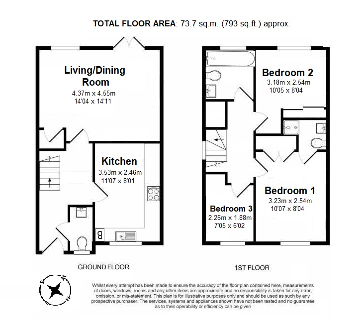 Heading upstairs, there are three wellproportioned bedrooms, including two doubles with built-in wardrobes. A modern family bathroom serves the floor, while the principal bedroom benefits from its own contemporary en-suite shower room.
