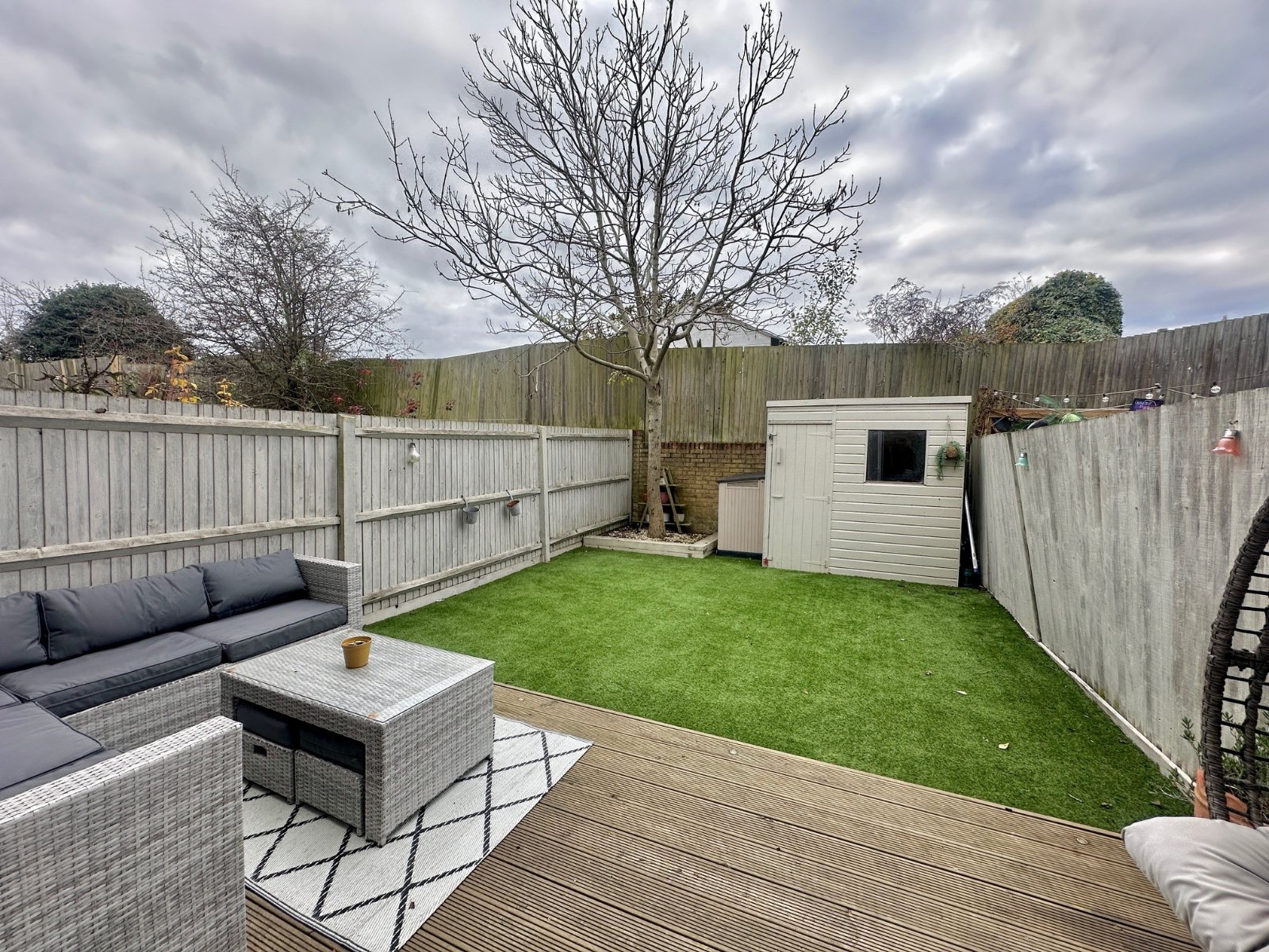 The property enjoys a smart frontage with allocated off-road parking for two cars. The rear garden is fully enclosed and designed for easy maintenance, featuring decking, artificial grass and a useful storage shed.