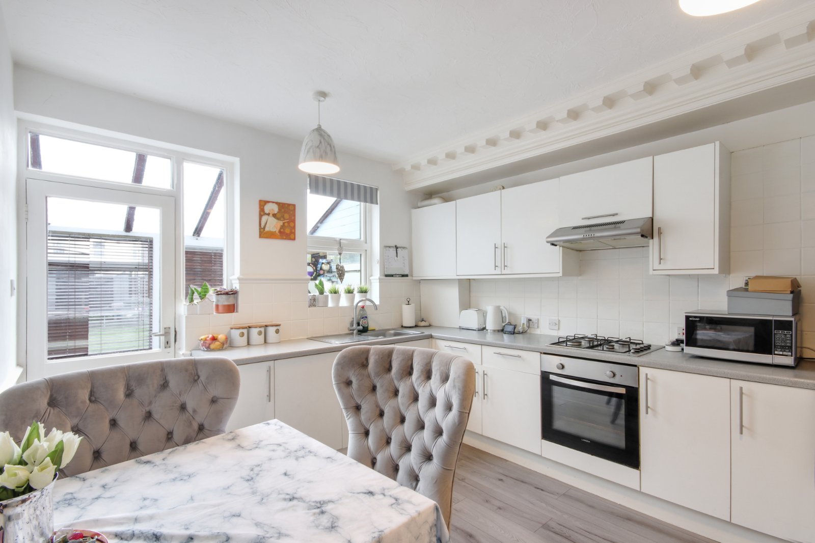 Kitchen/Dining Room 11'11" x 10'9" (3.63m x 3.28m). Double glazed window to rear. Pannelled door to rear. Window to rear. Wood effect flooring. Textured ceiling. Dado rail. Radiator. Fitted wall and base units with work tops over. Stainless steel sink and drainer unit with mixer taps and local tiling. Lamona oven and hob with filter hood over. Space for fridge/freezer.