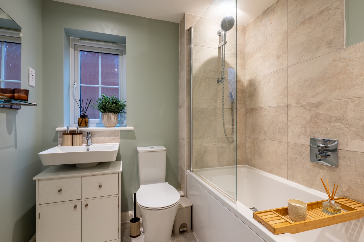 Upstairs, two generous double bedrooms and a stylish family bathroom with modern fixtures offer comfortable accommodation. Tastefully decorated throughout, the home provides a welcoming atmosphere while allowing new owners to personalise the space.