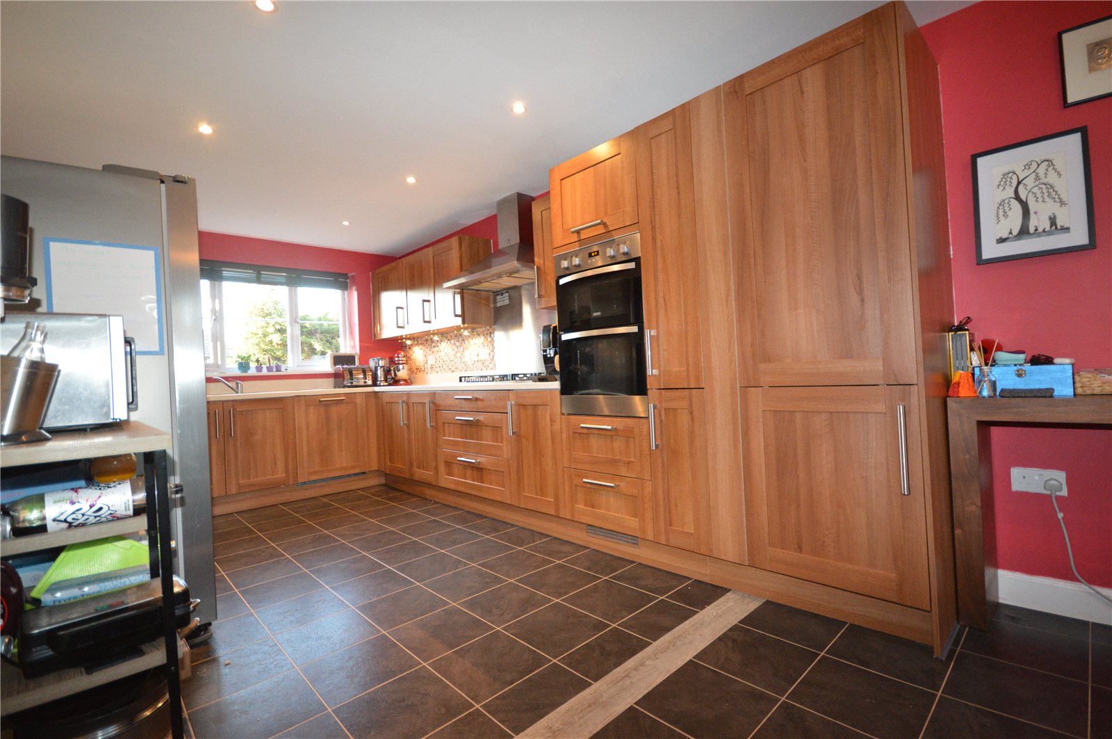 Kitchen/Dining Room 25'5" x 9'7" (7.75m x 2.92m). A double aspect room with windows to front and rear. Comprising ample work surfaces with inset single drainer sink unit with mixer tap. Extensive range of floor and matching wall cupboards. Inset gas hob with extractor fan over and matching double oven. Integrated dishwasher. Free standing American Samsung fridge freezer. Inset spotlights. Radiator.